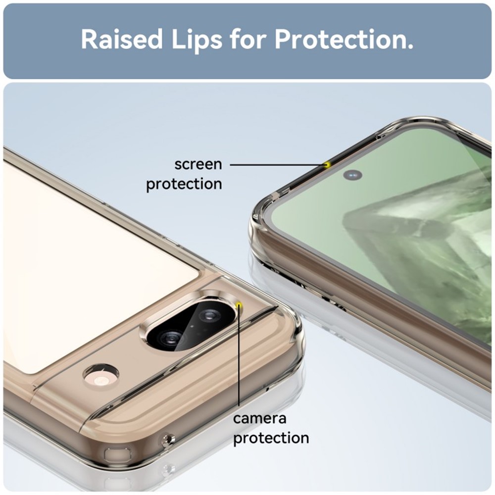For Google Pixel 8a Back Cover WANLONFENG XC Series TPU Acrylic Phone Case with Tempered Glass Film – Transparent Grey