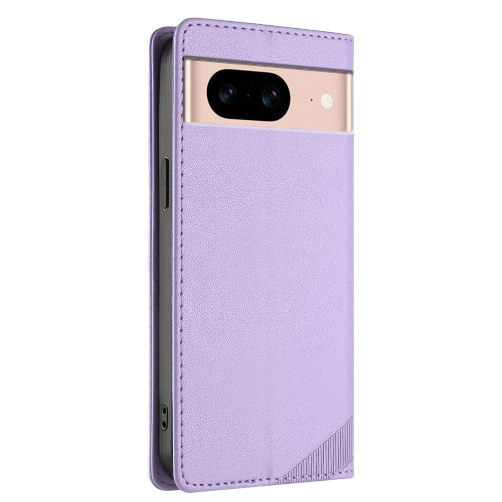 For Google Pixel 8a Phone Cases Punk Style Imprinted Wallet Stand Leather Cover – Light Purple