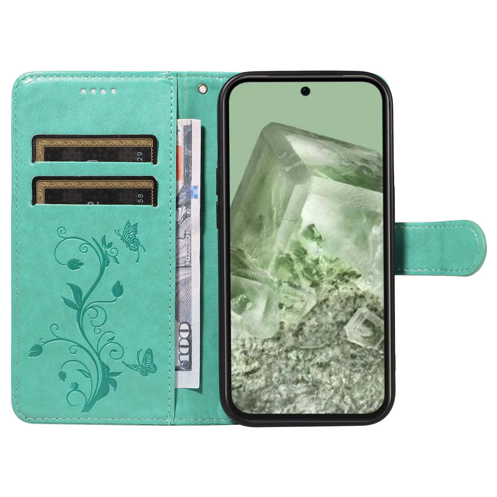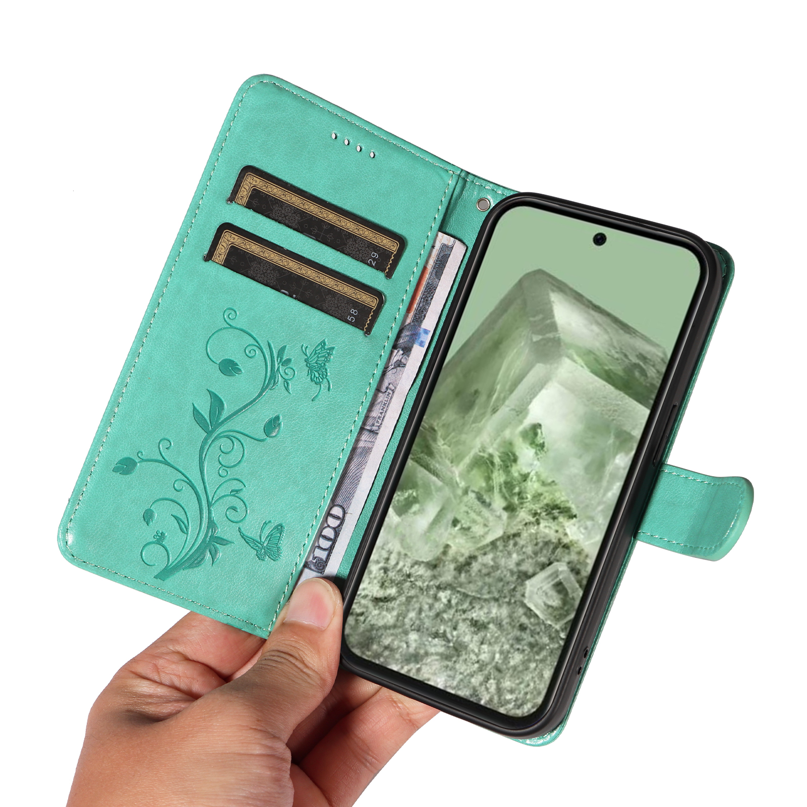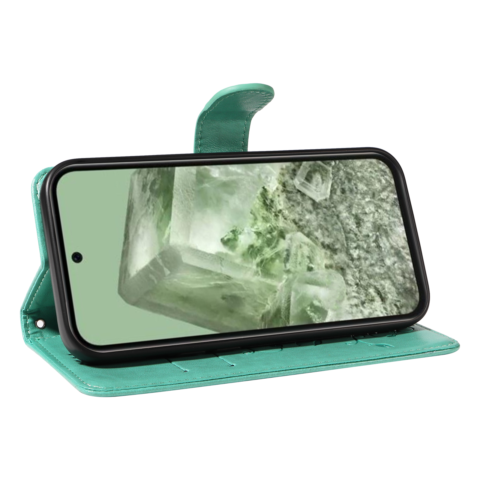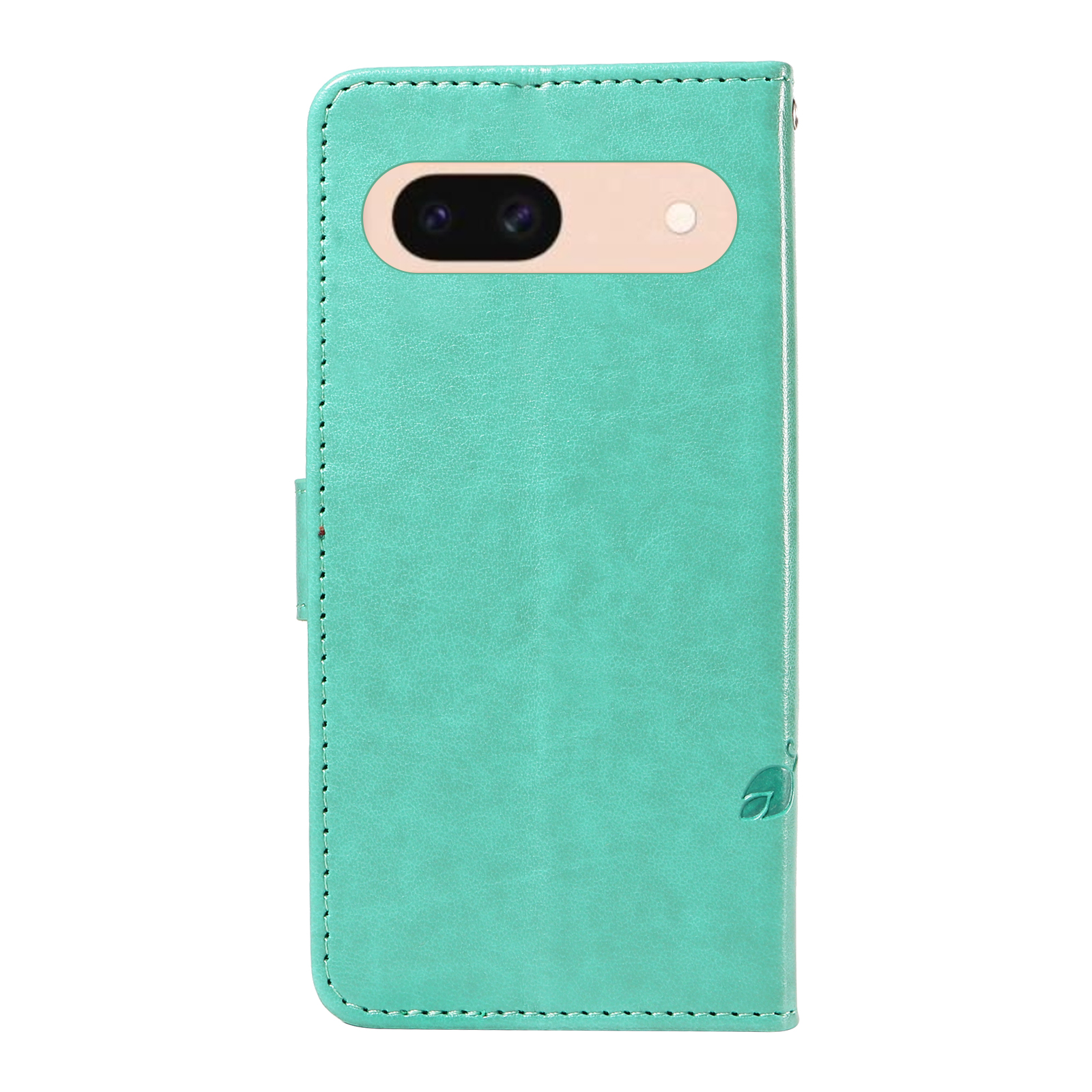 For Google Pixel 8a PU Leather Cases Flower Pattern Wallet Stand Phone Cover with Strap – Green