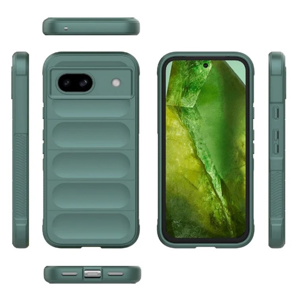 For Google Pixel 8a TPU Case WANLONFENG HD Series Anti Slip Phone Cover with Tempered Glass – Army Green