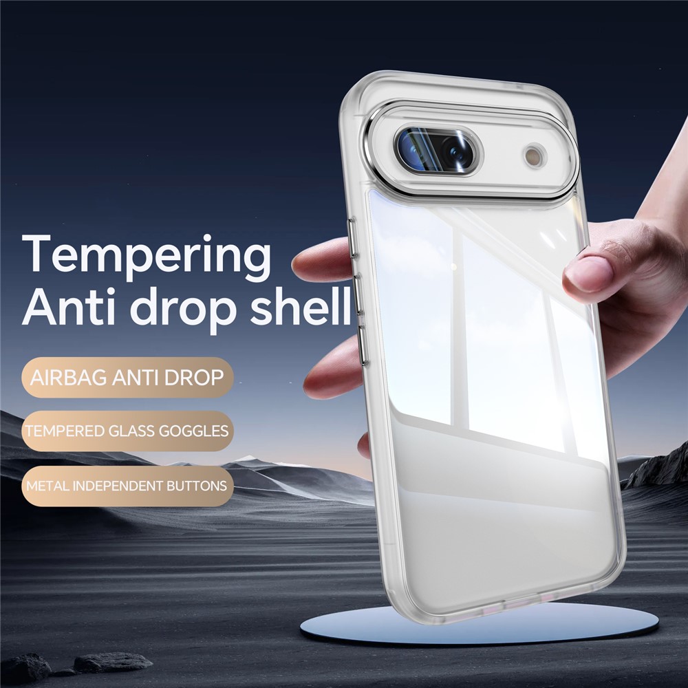 For Google Pixel 8a TPU Case WANLONFENG Shockproof Clear Phone Cover with Tempered Glass Film – Transparent