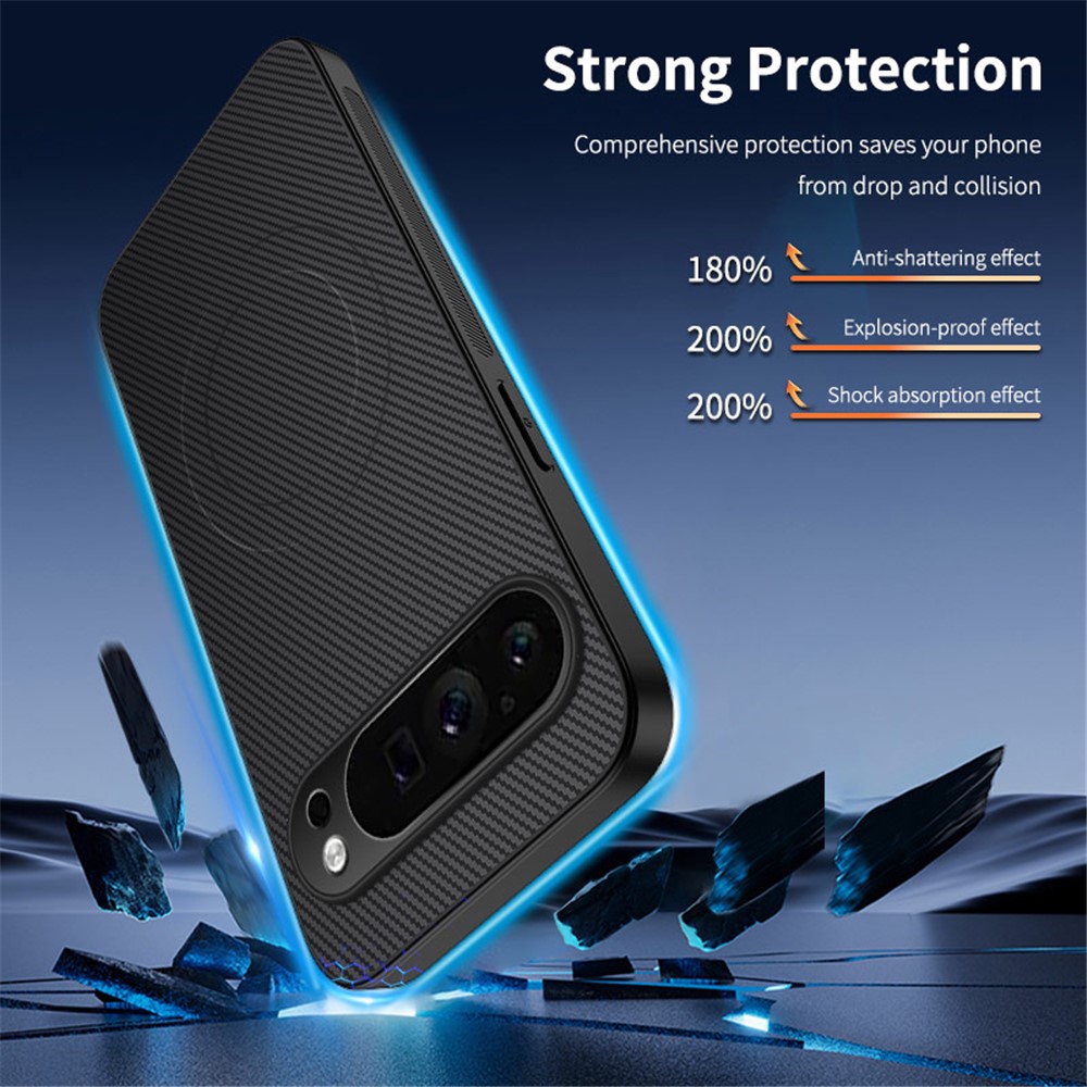 • For Google Pixel 9 Pro Case Compatible with MagSafe WANLONFENG TQ Series Carbon Fiber Texture PC TPU Phone Cover - Black