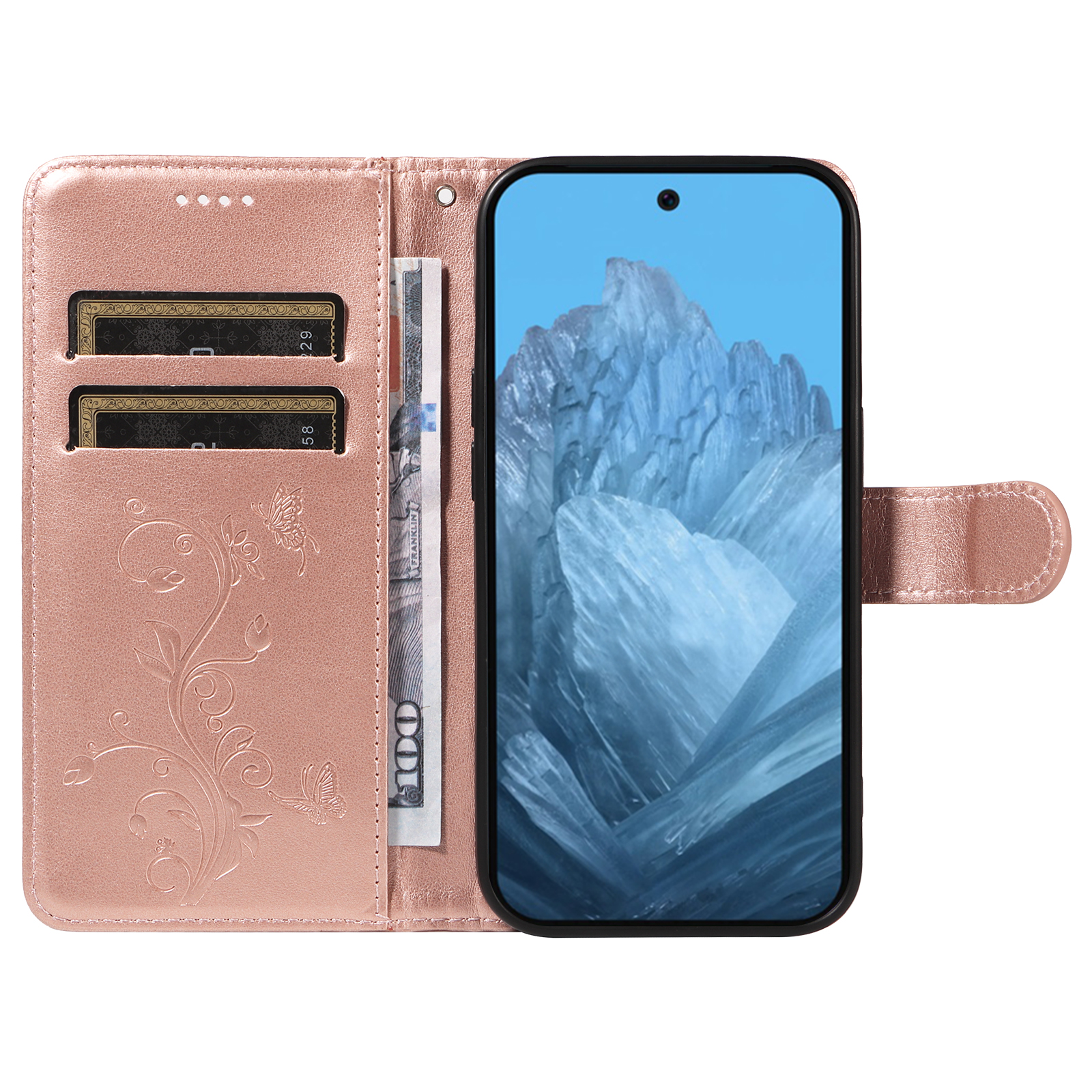 • Elegant Pattern Imprinted Features a stunning butterfly and flower pattern imprinted design on the front cover and the inner card slots area, adding a touch of luxury and uniqueness