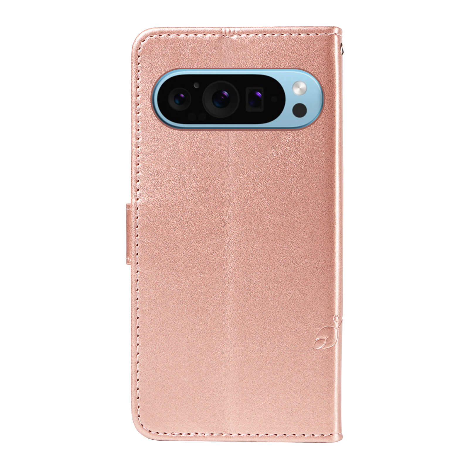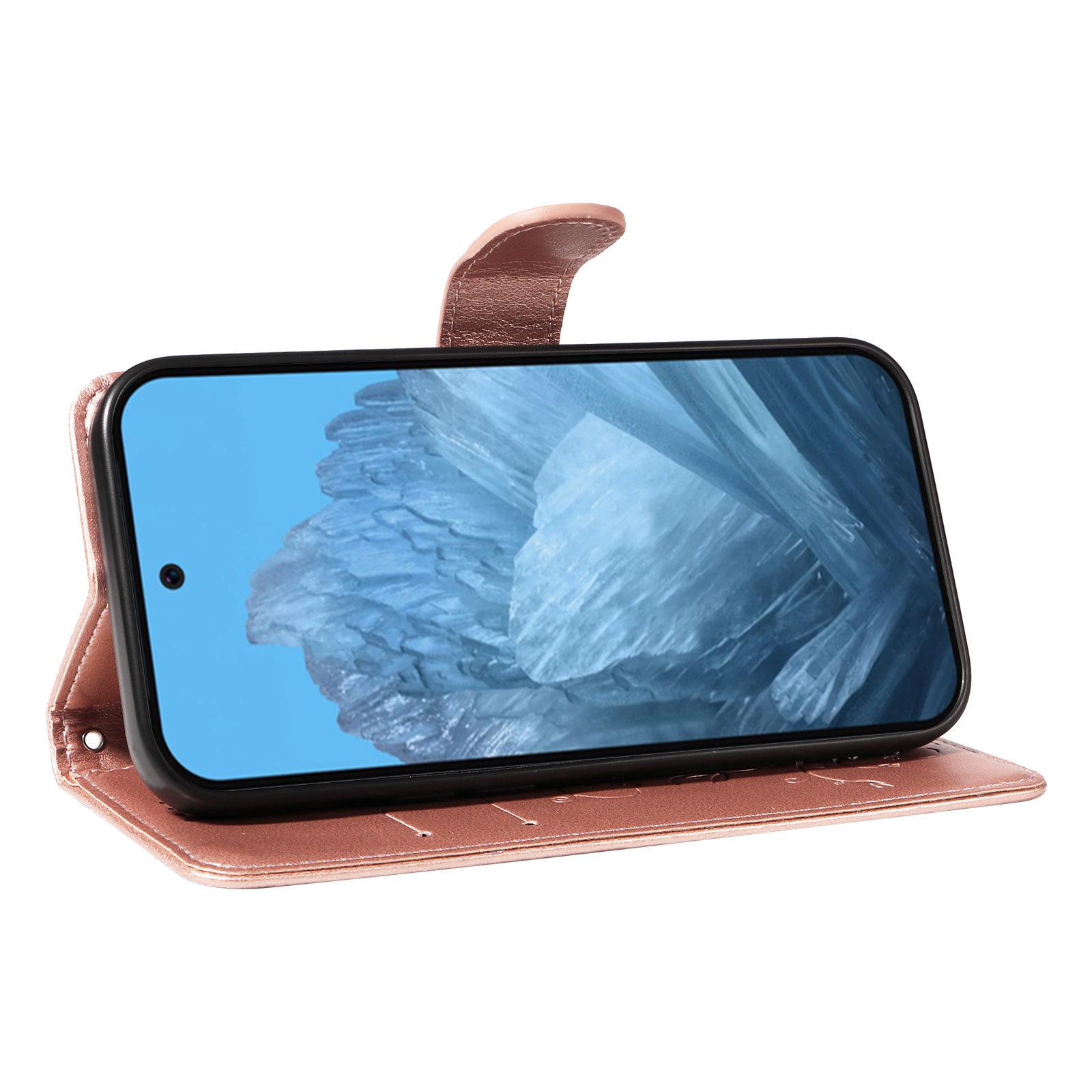 For Google Pixel 9 Pro / Google Pixel 10 / Google Pixel 10 Pro / Google Pixel 9 PU Leather Cases Flower Pattern Wallet Stand Phone Cover with Strap – Rose Gold