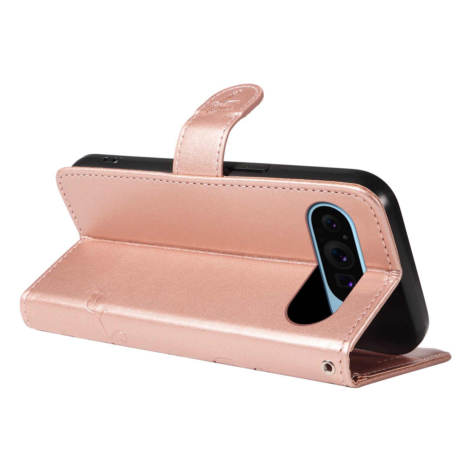 For Google Pixel 9 Pro / Google Pixel 10 / Google Pixel 10 Pro / Google Pixel 9 PU Leather Cases Flower Pattern Wallet Stand Phone Cover with Strap - Rose Gold $15.72