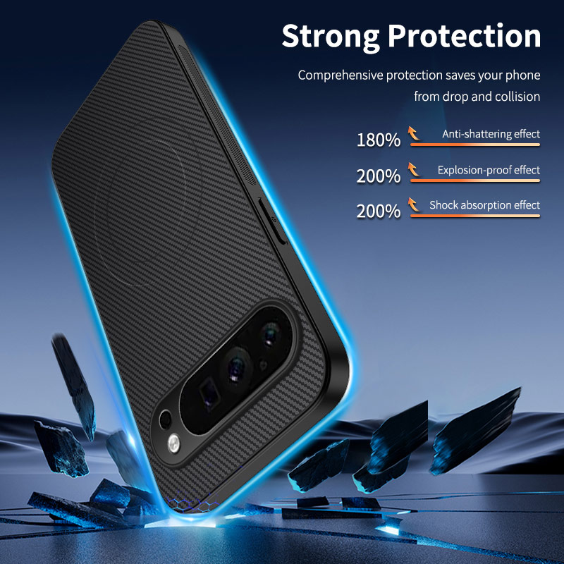 • For Google Pixel 9 Pro Magnetic Case WANLONFENG TQ1 Series Carbon Fiber Texture PC TPU Phone Cover with 2Pcs Screen Films - Black