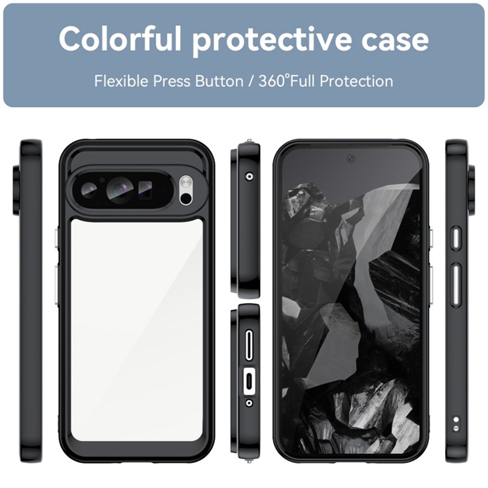 For Google Pixel 9 Pro XL Back Cover WANLONFENG XC Series TPU Acrylic Phone Case with Tempered Glass Film – Black
