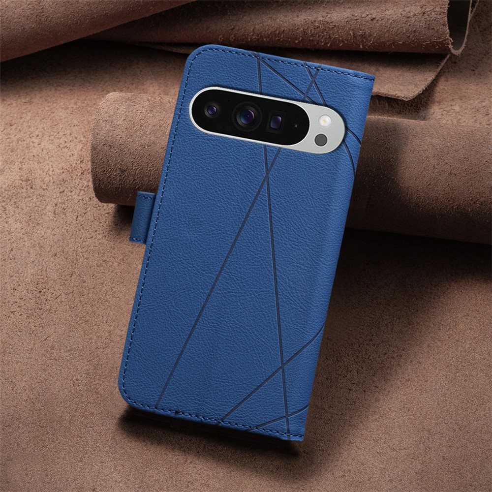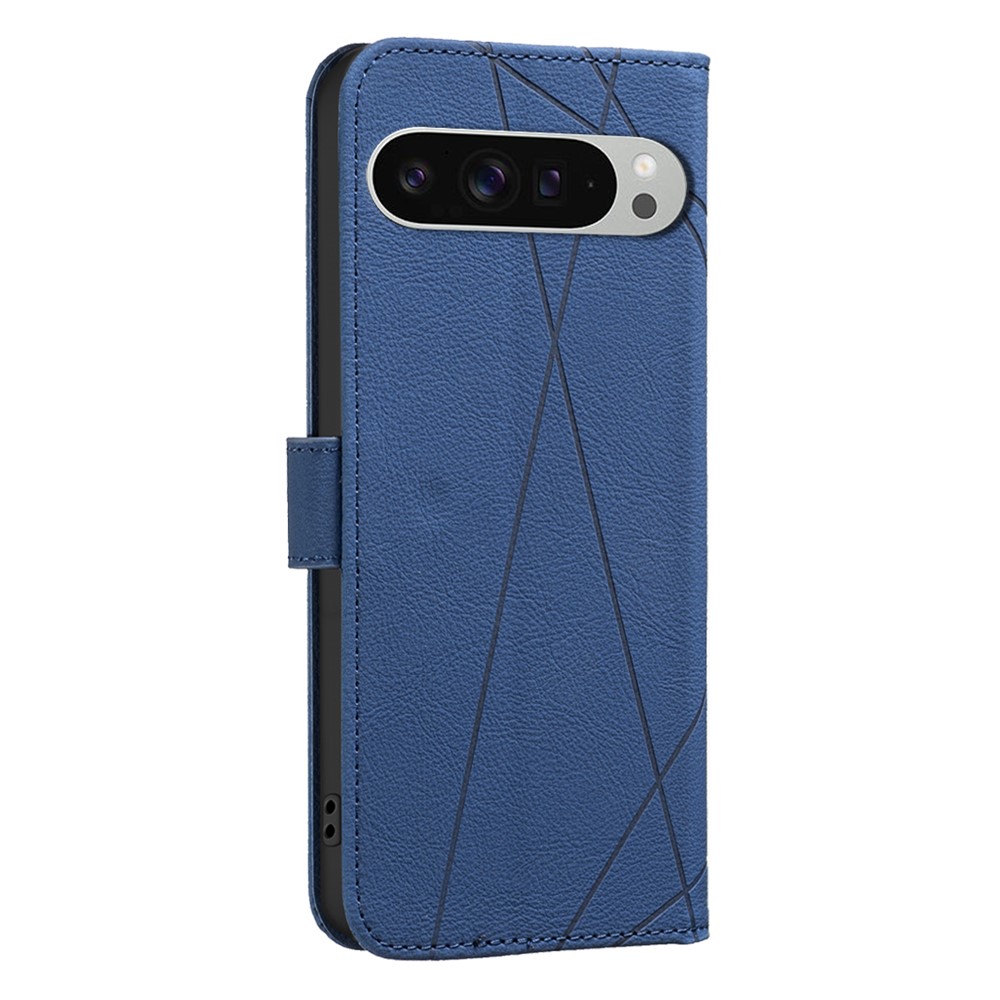 For Google Pixel 9 Pro XL Case BINFEN COLOR BF35 Geometry Imprinted Leather Phone Cover RFID Blocking Wallet Stand – Blue