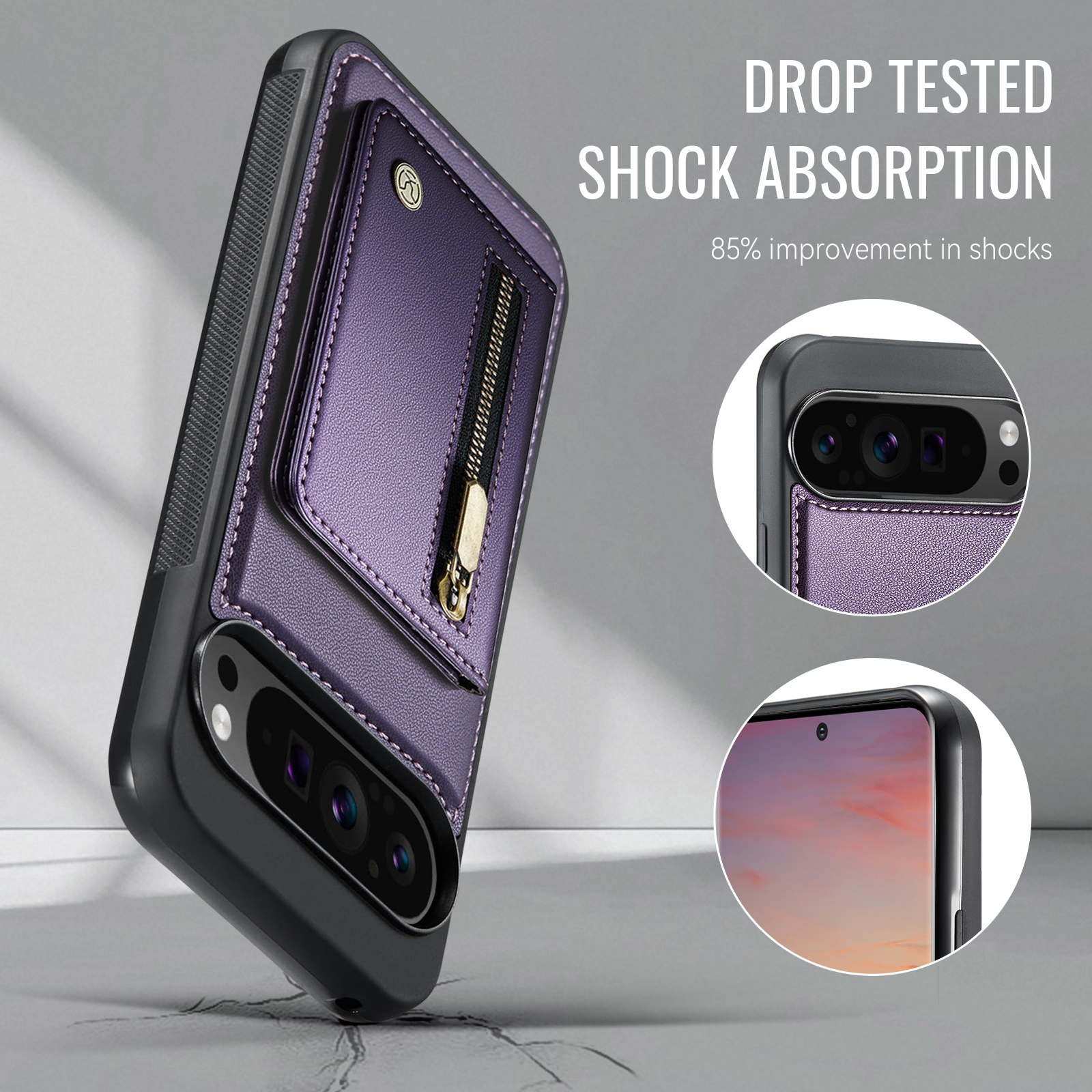 - Versatile Storage Features 1 zipper pocket on the front, 1 photo slot, 3 card slots, and a cash slot inside for maximum organization.