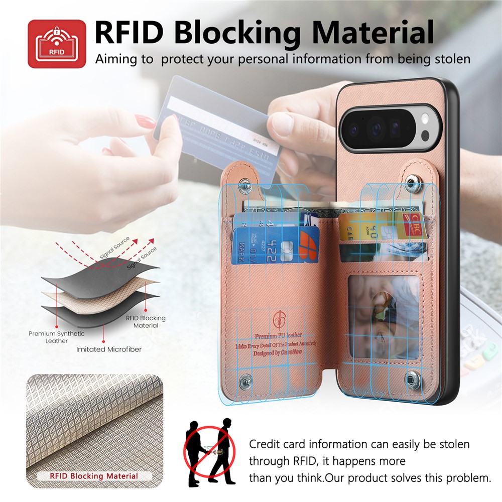 - Dual-Side RFID Blocking Card Slots Secures 2 cards on each side with RFID-shielding material, preventing wireless theft of credit card or ID data