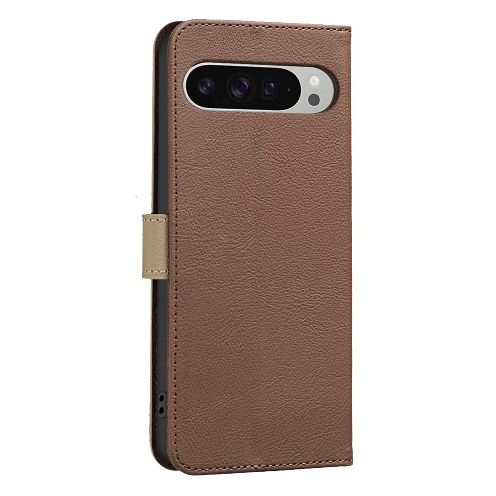 For Google Pixel 9 Pro XL Leather Case BINFEN COLOR BF36 Floral Pattern Phone Cover RFID Blocking Wallet Stand - Brown