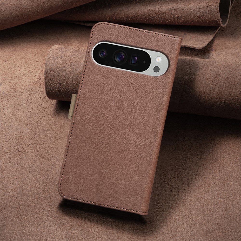 For Google Pixel 9 Pro XL Leather Case BINFEN COLOR BF36 Floral Pattern Phone Cover RFID Blocking Wallet Stand – Brown