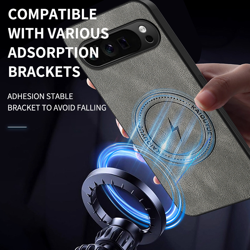 For Google Pixel 9 Pro XL Magnetic Case WANLONFENG SD1 Series Nappa Texture PC TPU Phone Cover – Grey