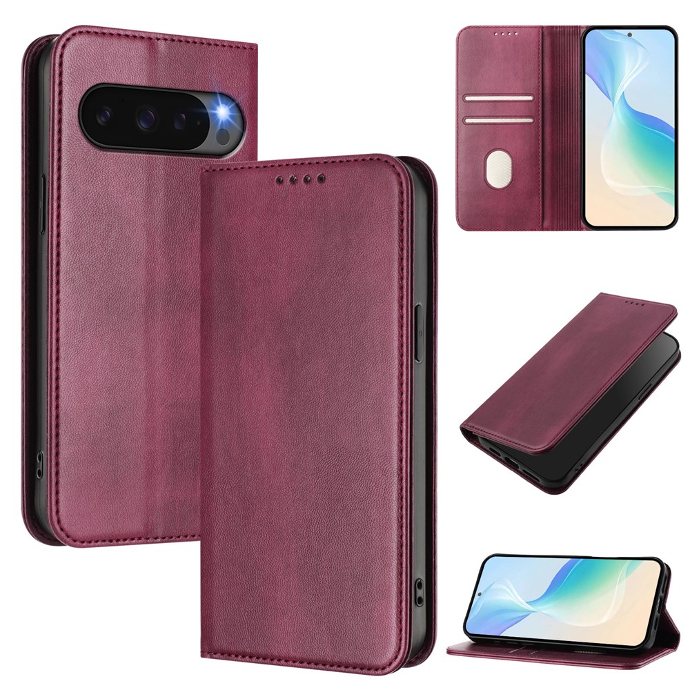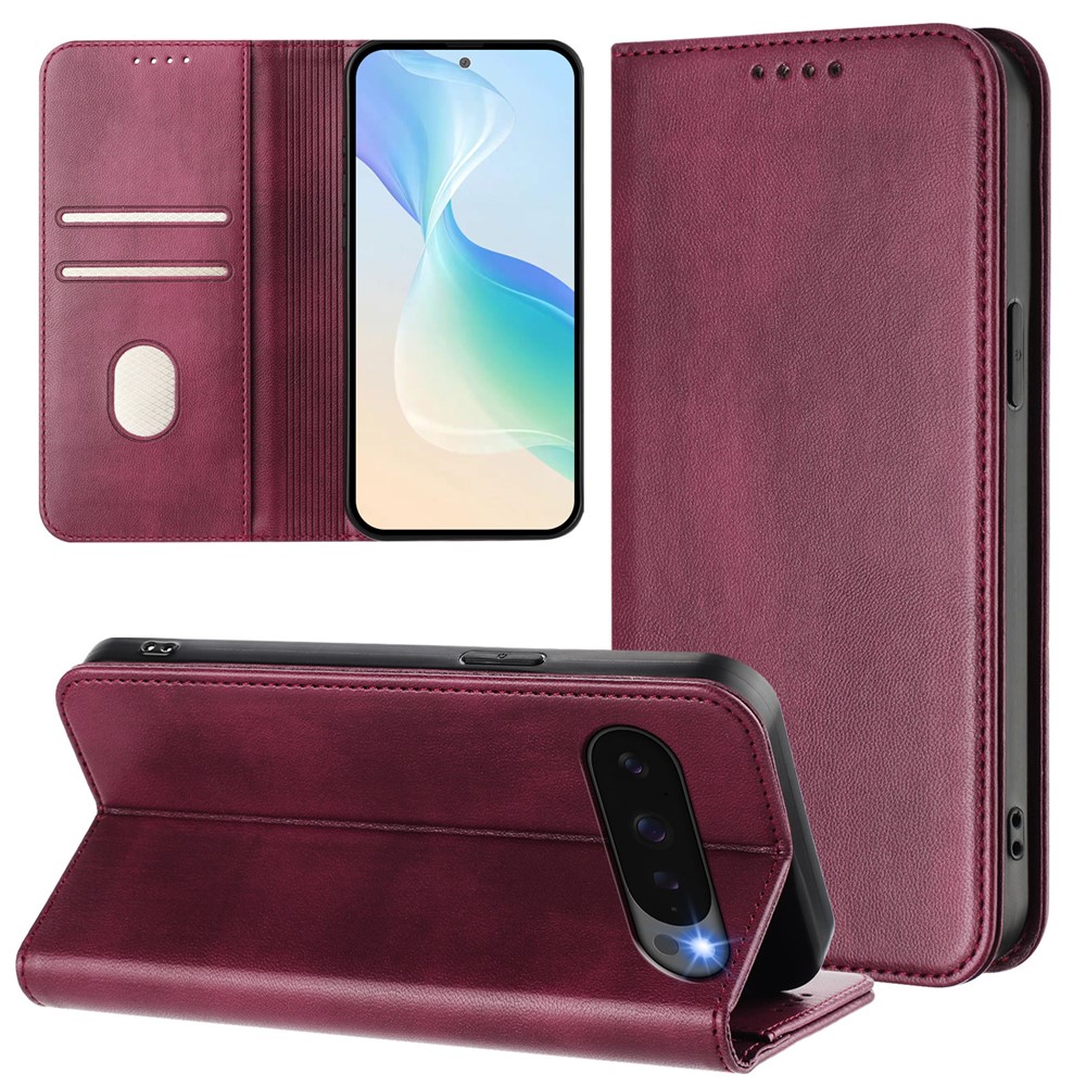 For Google Pixel 9 Wallet Cases Retro Texture RFID Blocking Leather Phone Cover – Wine Red