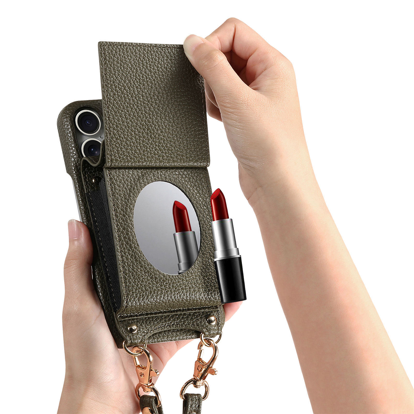- Mirror Functionality Includes a plastic mirror for quick touch-ups on the go, adding practicality to your phone case