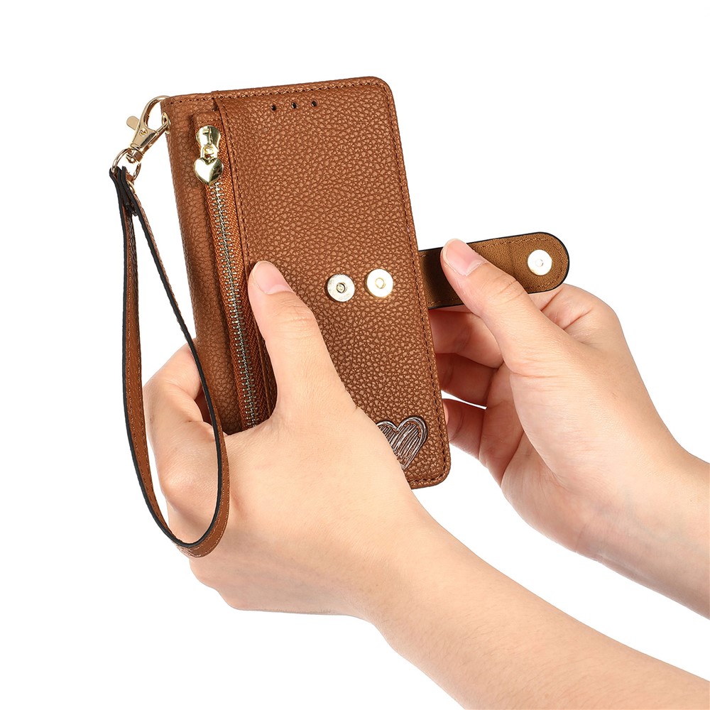 - Premium Material and Stylish Design Made from premium PU leather with a flexible TPU bottom case, it offers a comfortable hand feeling. The imprinted small heart shape and heart-shaped zipper add a touch of style and elegance