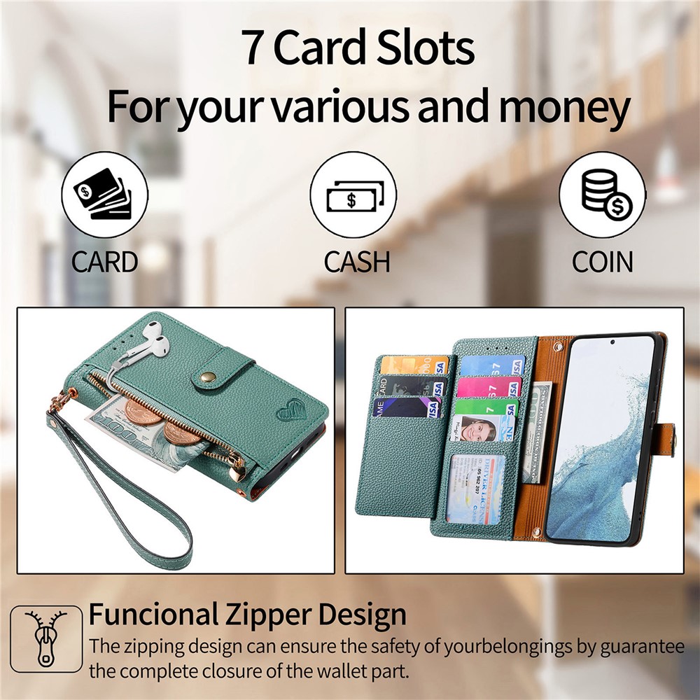 - Premium Material and Stylish Design Made from premium PU leather with a flexible TPU bottom case, it offers a comfortable hand feeling. The imprinted small heart shape and heart-shaped zipper add a touch of style and elegance