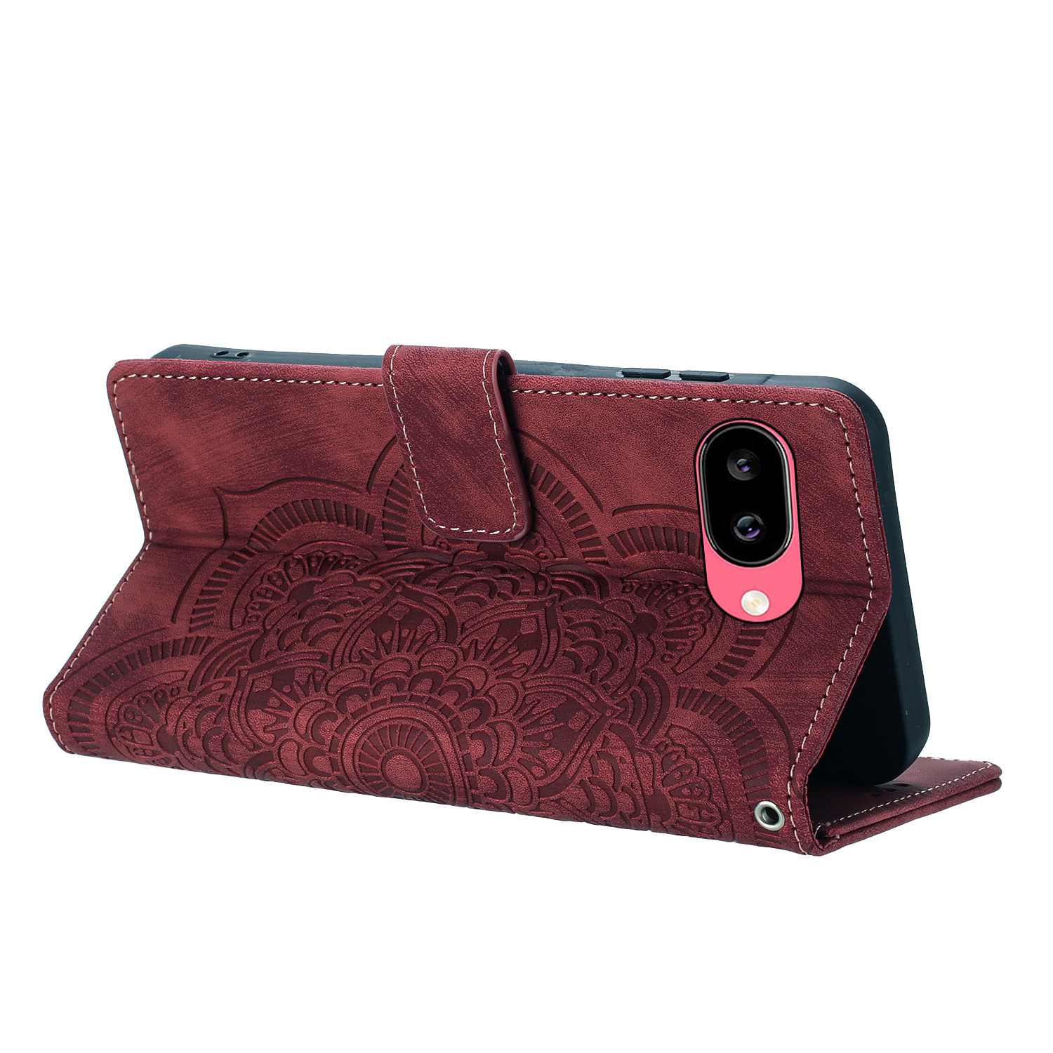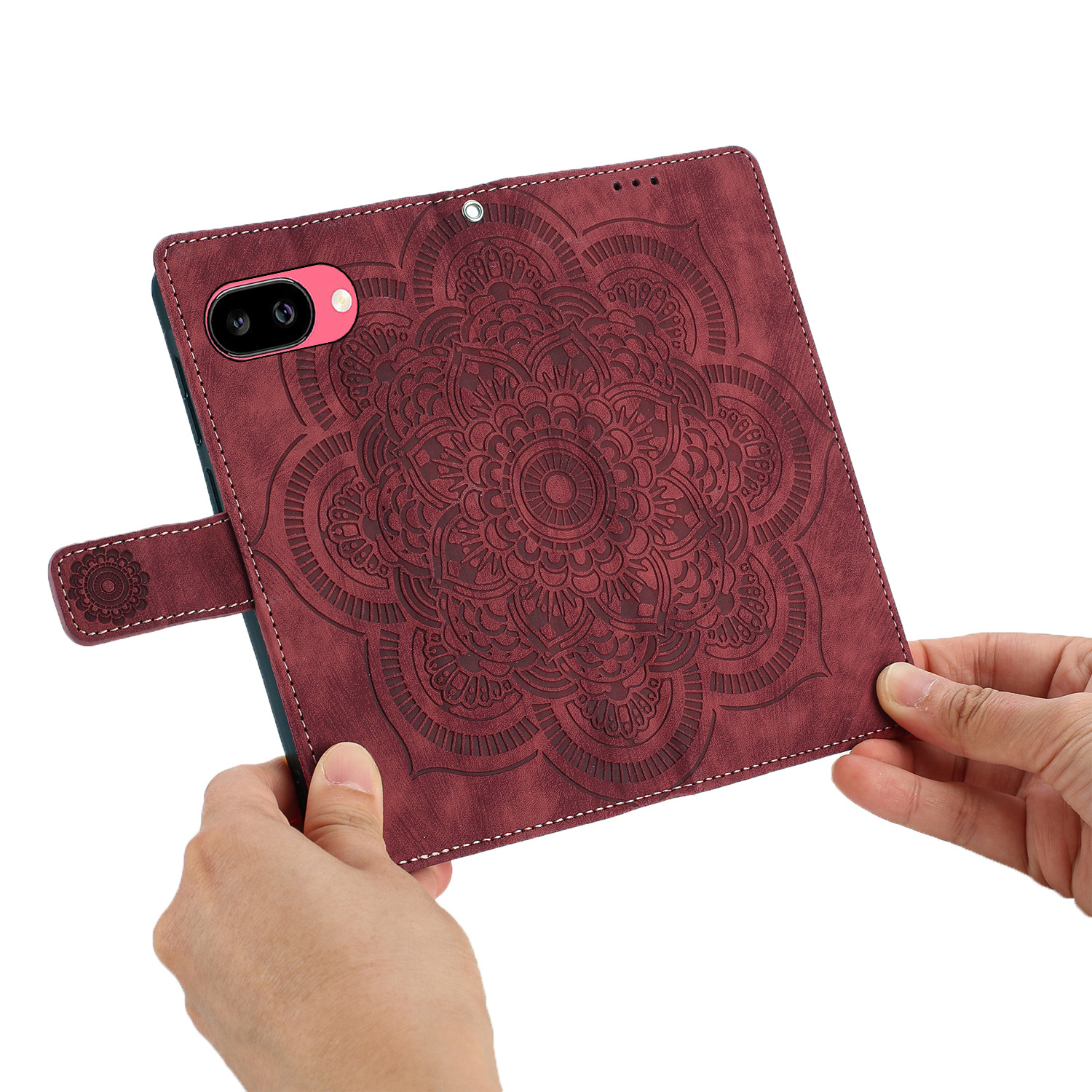 For Google Pixel 9a Case with 2Pcs Tempered Glass WANLONFENG MTL Series Mandala Leather Phone Cover - Red $17.33