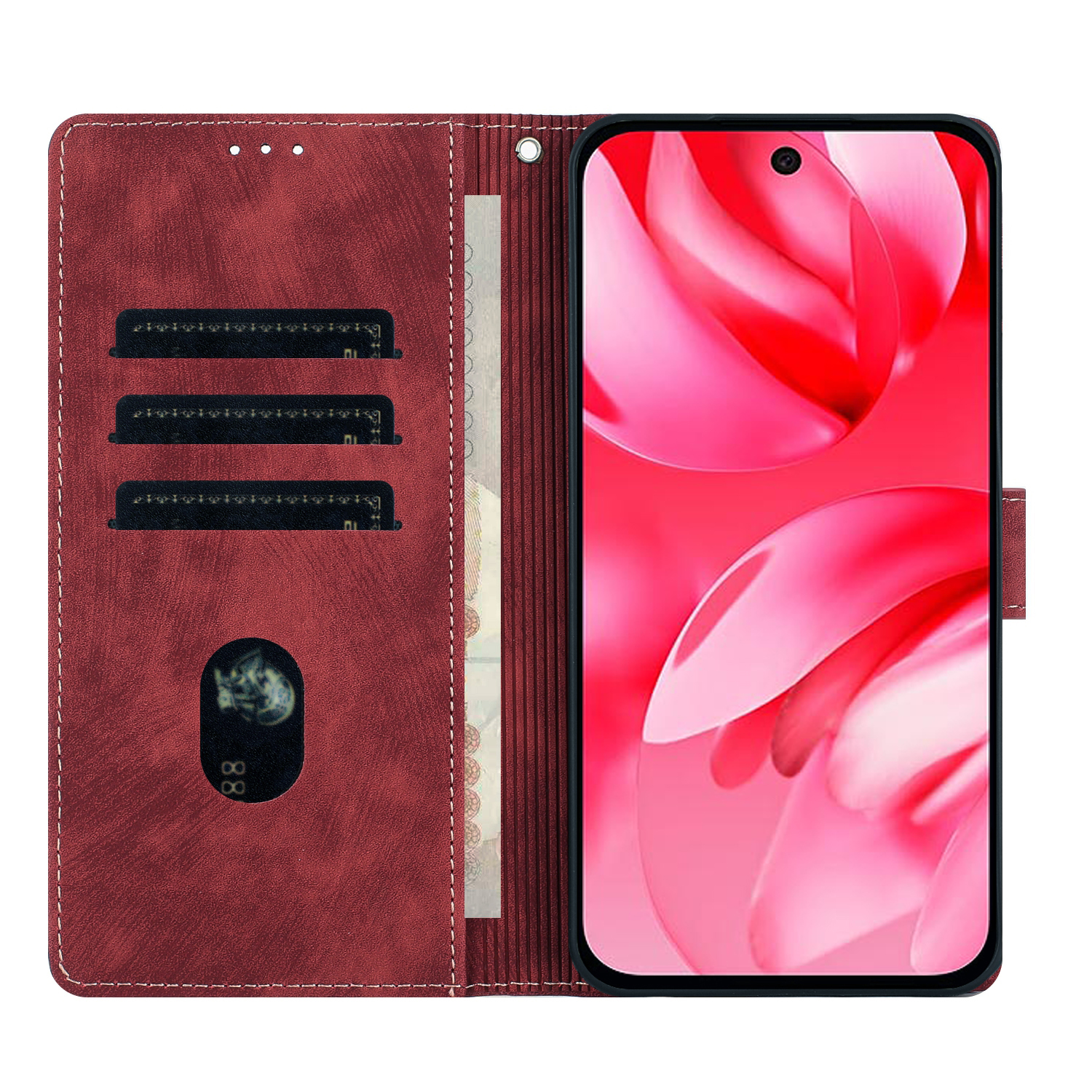 For Google Pixel 9a Case with 2Pcs Tempered Glass WANLONFENG MTL Series Mandala Leather Phone Cover - Red
