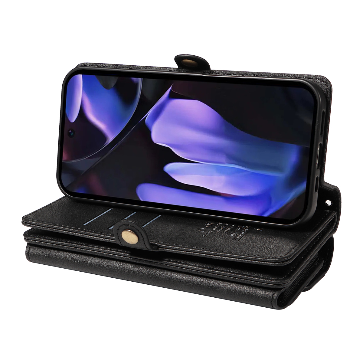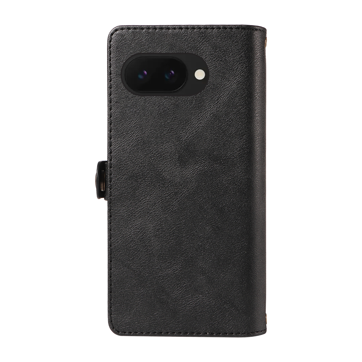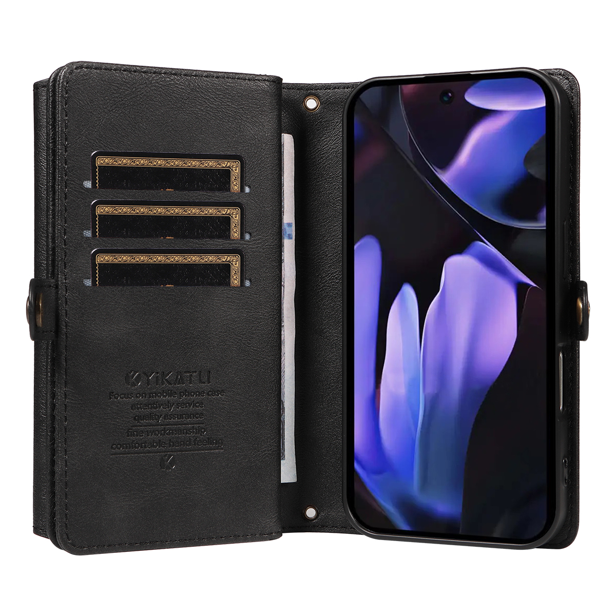 For Google Pixel 9a Case YIKATU YK-008 Zipper Wallet Leather Phone Cover with Shoulder Strap – Black