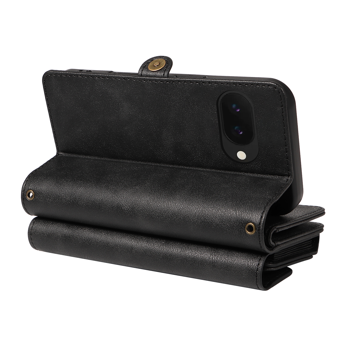 For Google Pixel 9a Case YIKATU YK-008 Zipper Wallet Leather Phone Cover with Shoulder Strap - Black