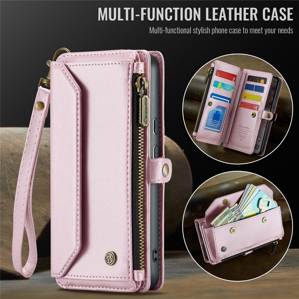 For Google Pixel 9a Leather Case CASEME C36 Zipper Multiple Card Slots Phone Cover with Straps - Pink $25.44