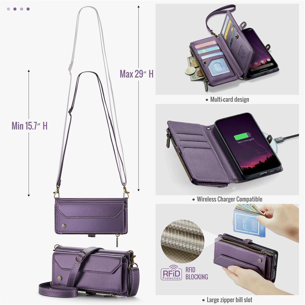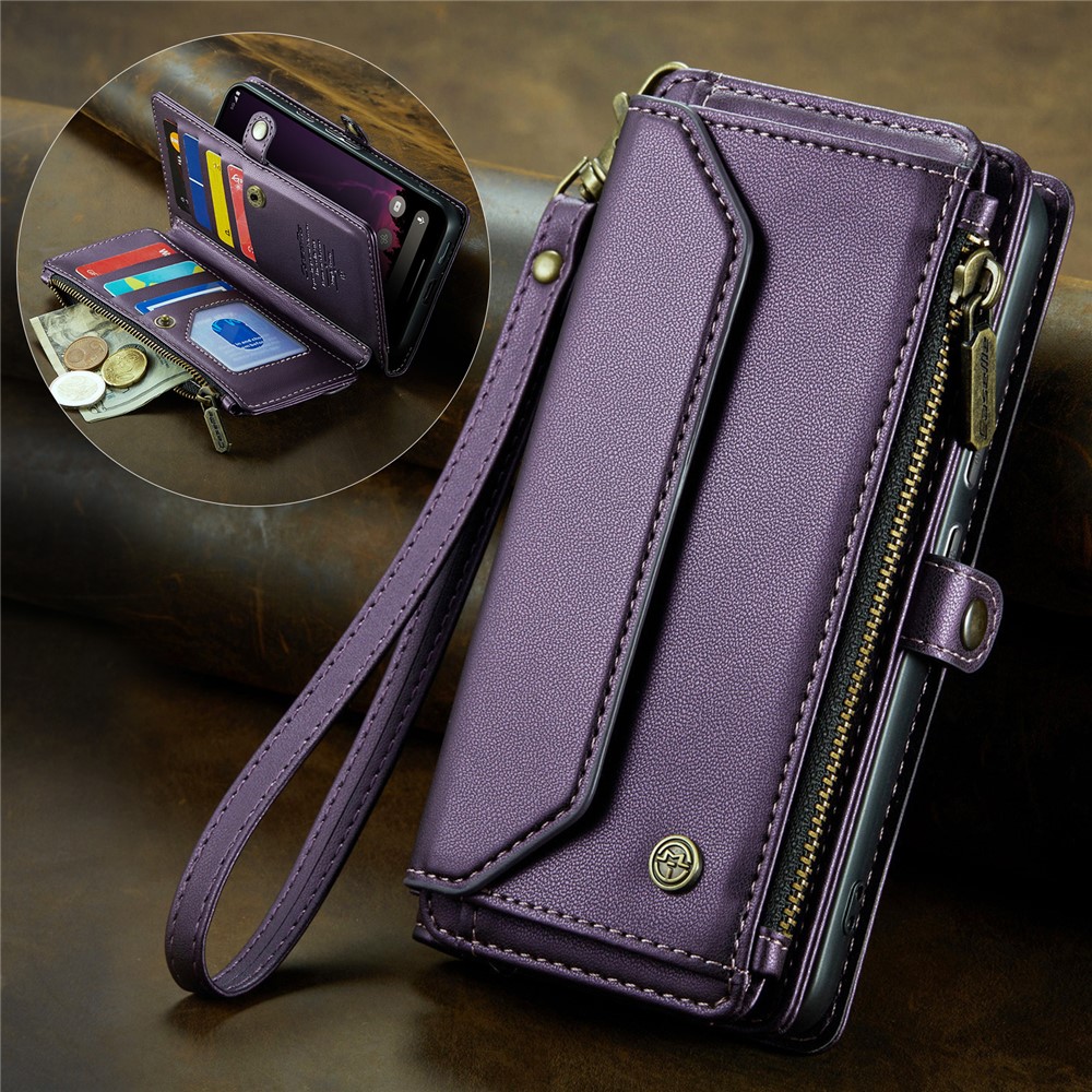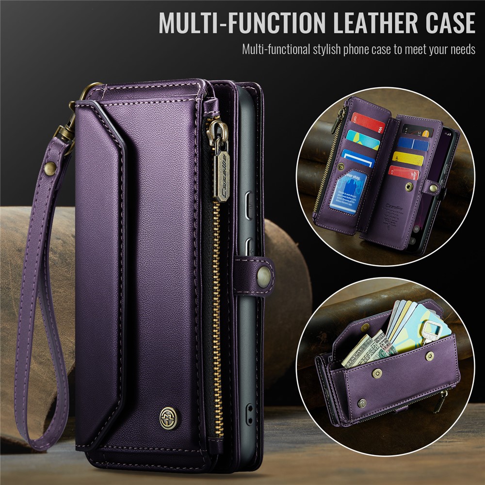 For Google Pixel 9a Leather Case CASEME C36 Zipper Multiple Card Slots Phone Cover with Straps – Purple
