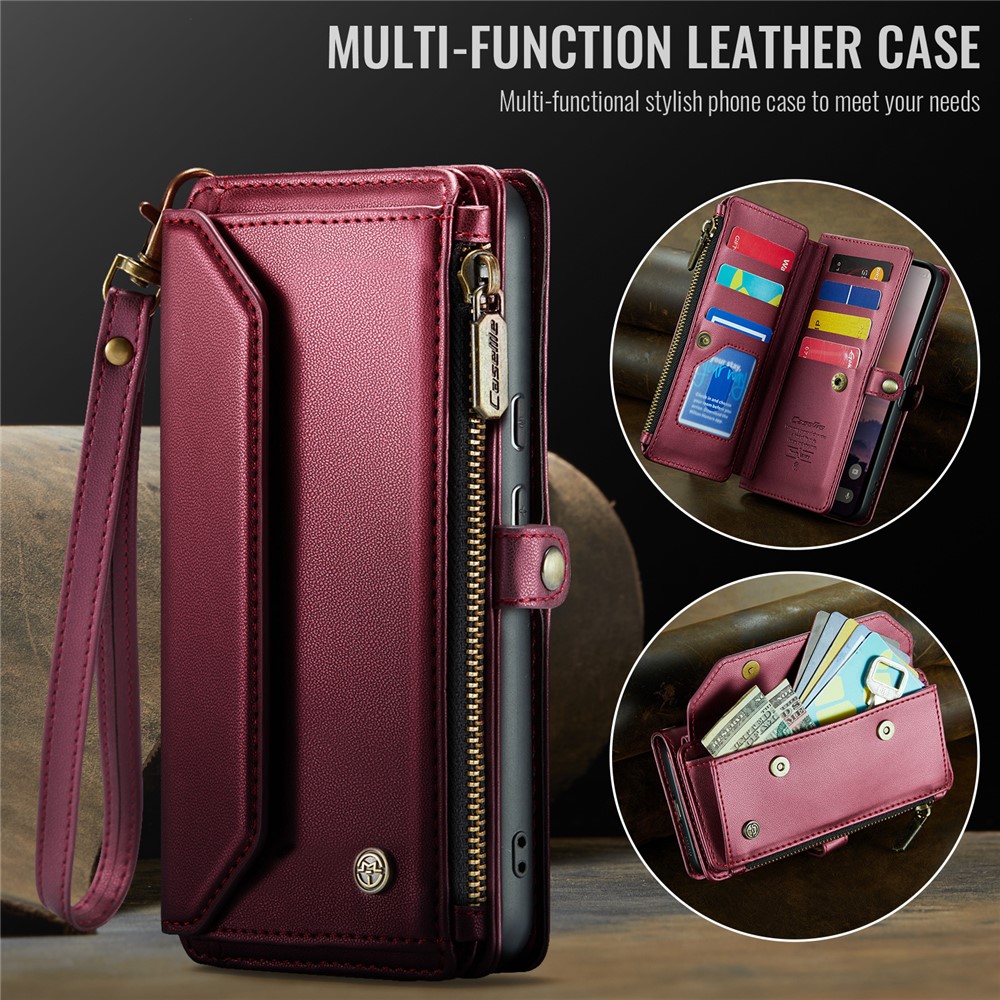 For Google Pixel 9a Leather Case CASEME C36 Zipper Multiple Card Slots Phone Cover with Straps – Wine Red