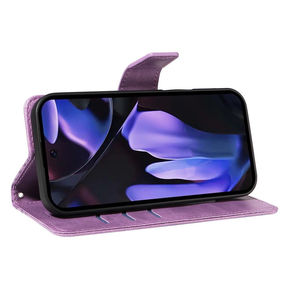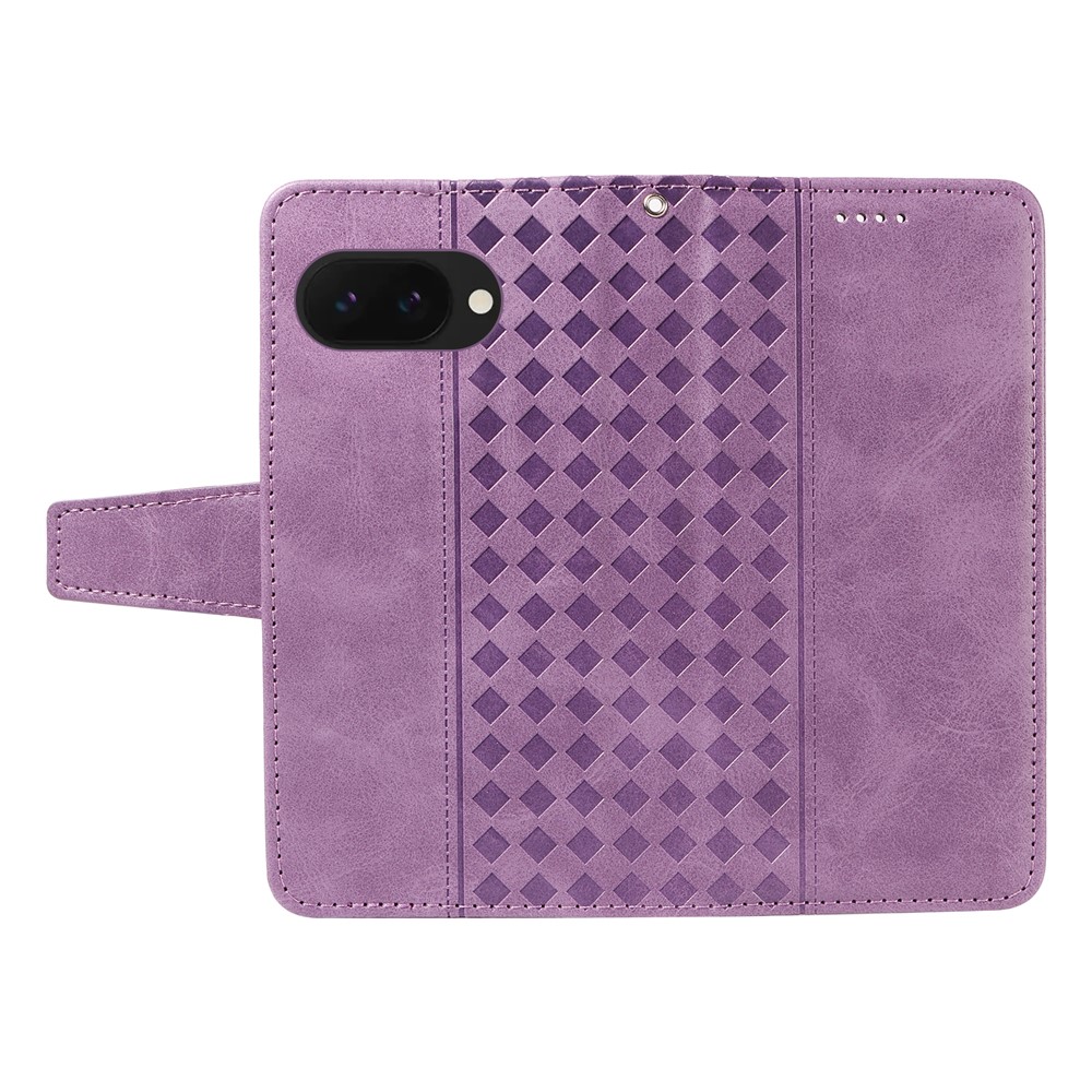 For Google Pixel 9a Leather Case Wallet Stand Grids Imprinted Phone Cover with Strap - Light Purple