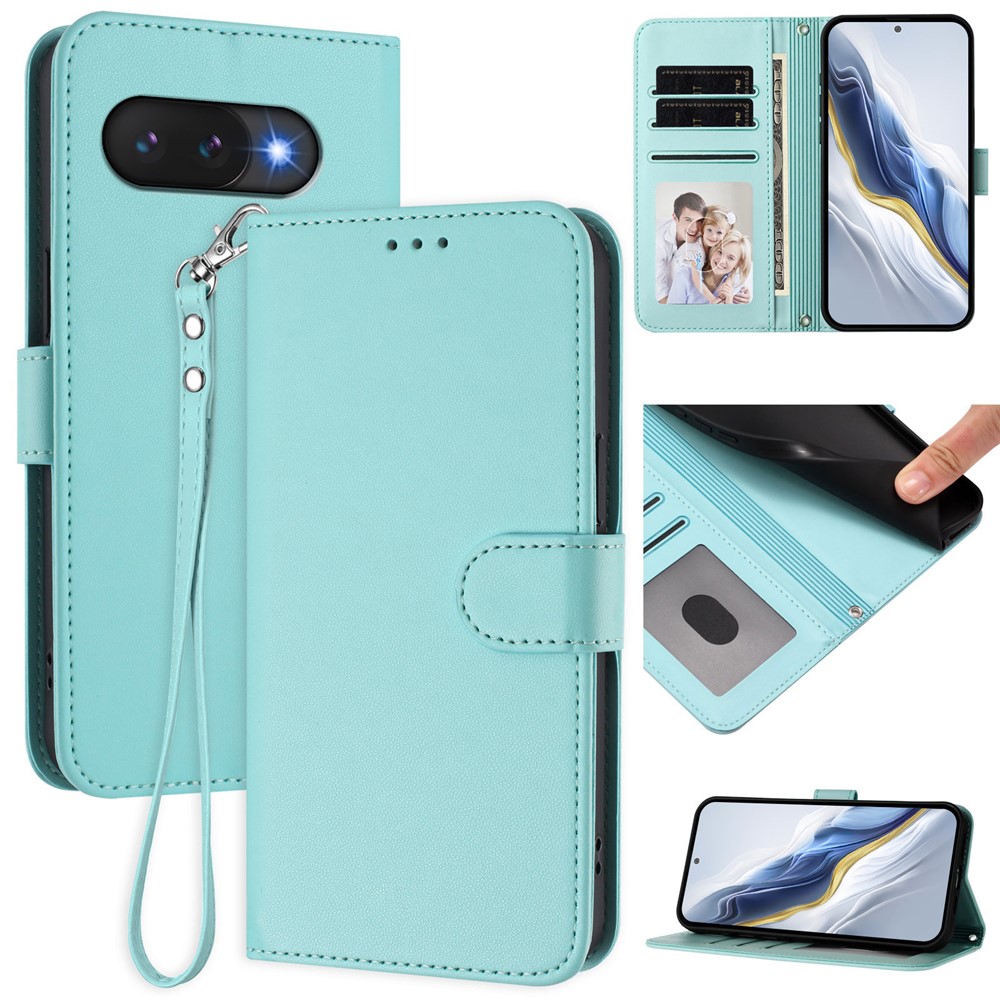 For Google Pixel 9a Leather Case Wallet Stand Phone Cover with Wrist Strap – Mint Green