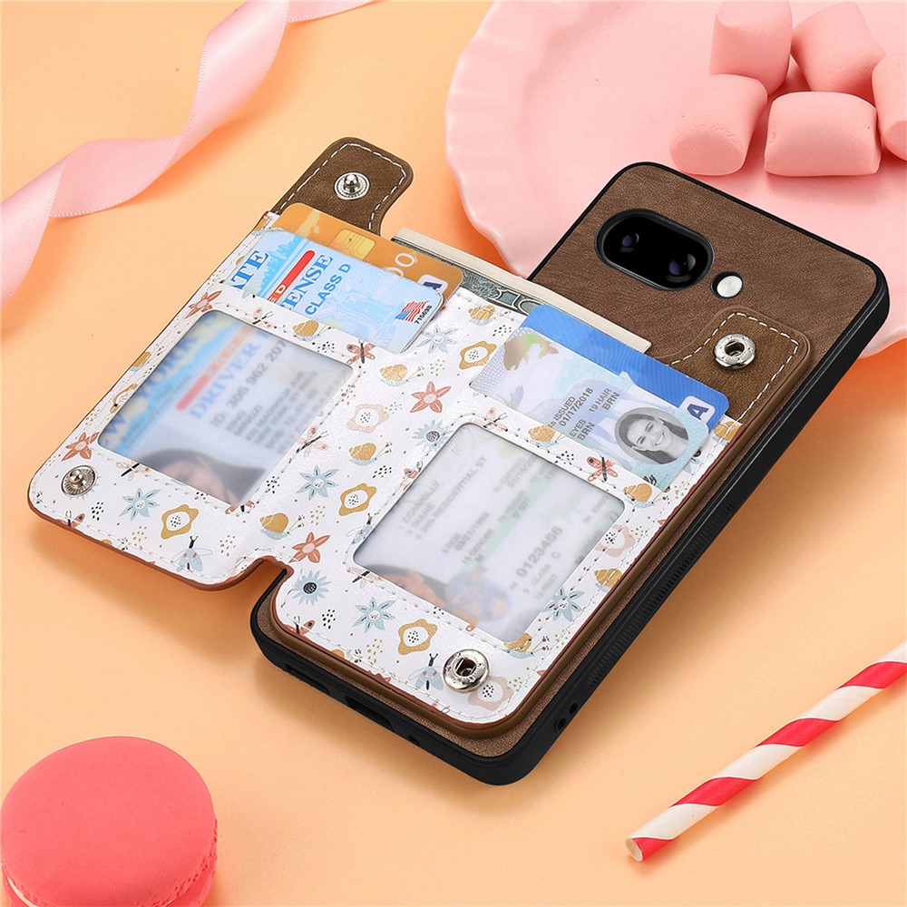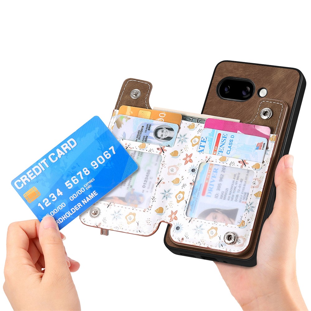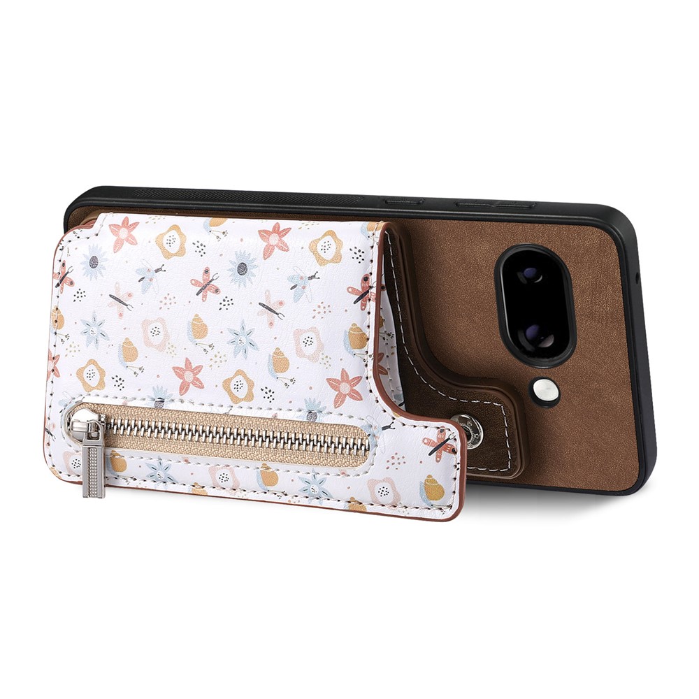 For Google Pixel 9a Leather Phone Cover with RFID Blocking Zipper Card Bag Kickstand – Brown