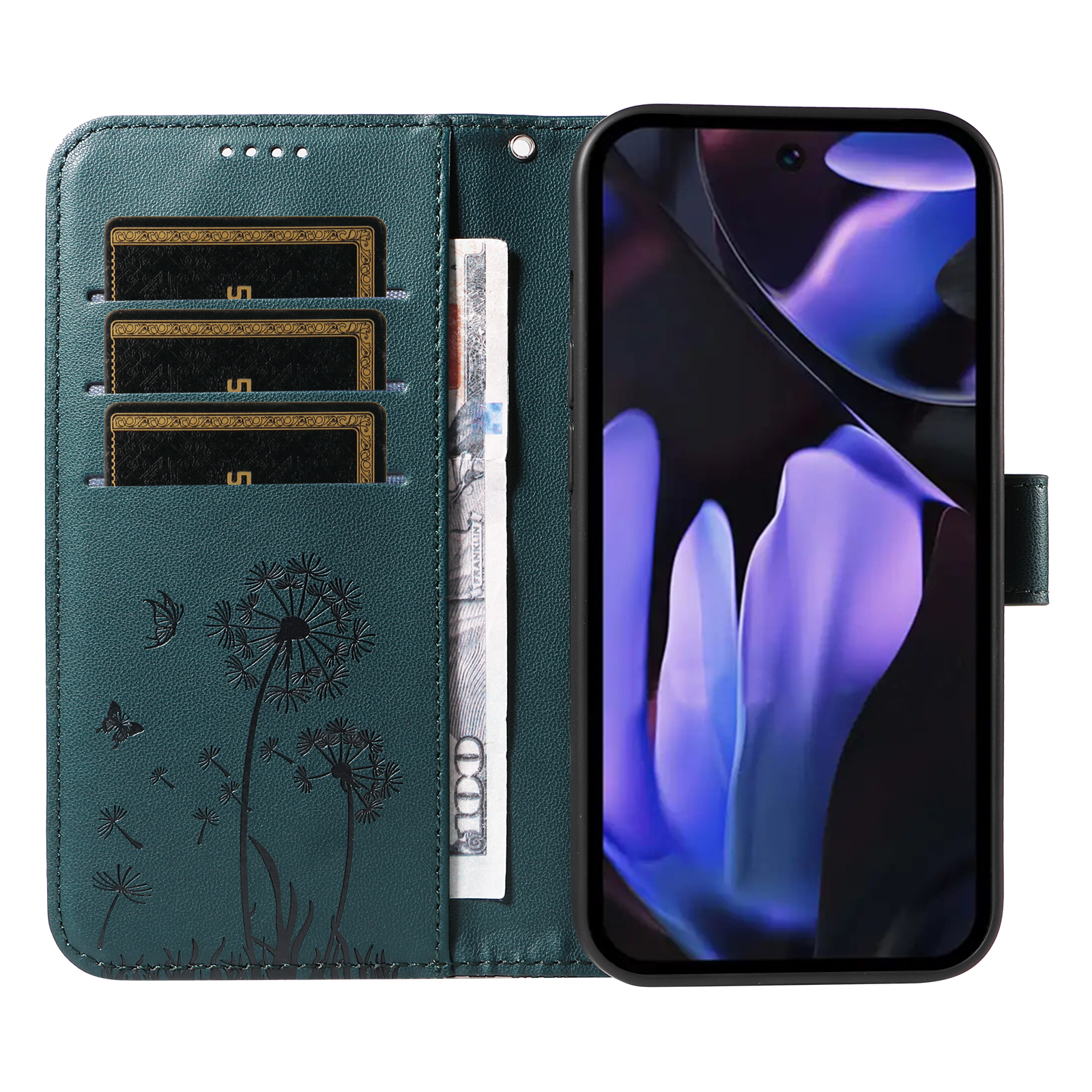 - Elegant Pattern Imprinted Features a stunning Dandelion pattern imprinted design on the surface of the leather cover and card slot area, adding a touch of luxury and uniqueness