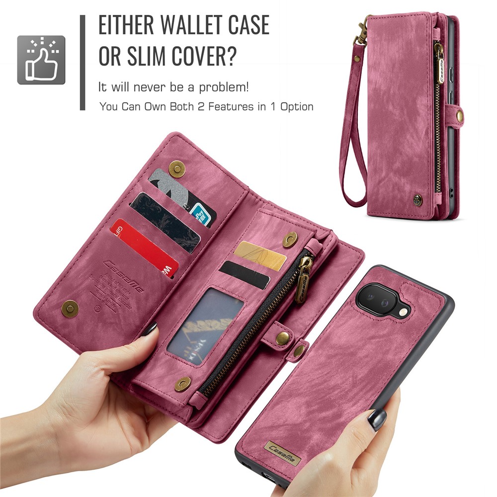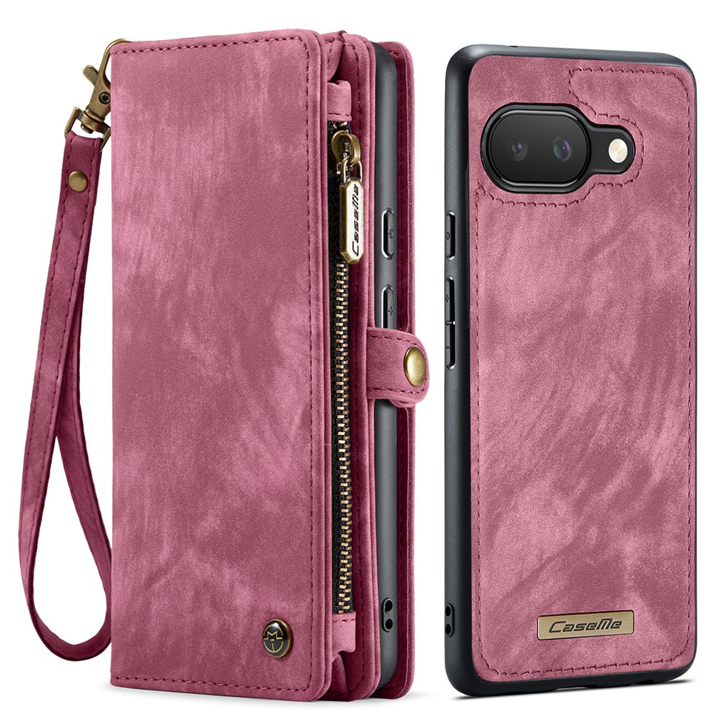 For Google Pixel 9a Phone Cases CASEME 008 Leather Cover with Detachable Wallet and Strap – Red
