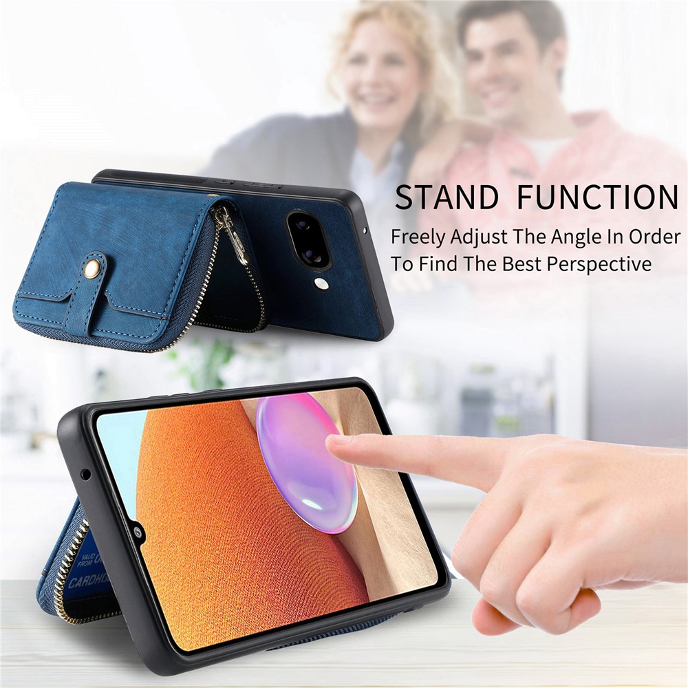 - Card Holder Kickstand The outer zipper pocket with card slot to hold extra cards. The zipper card holder can be as a kickstand when open that freely adjusted the angle to find the best viewing perspective