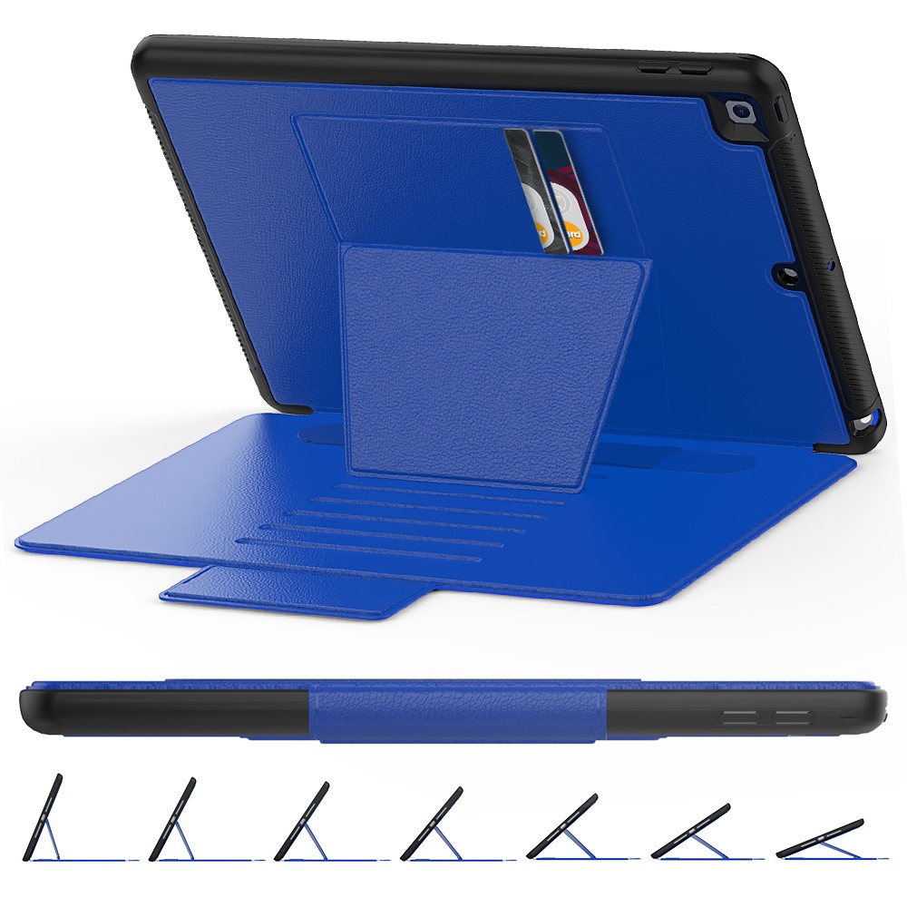 For iPad 10.2 (2020)/(2019) Multi-angle Stand Card Holder Leather Tablet Case Magnetic Closure Cover with Stylus Slot – Blue