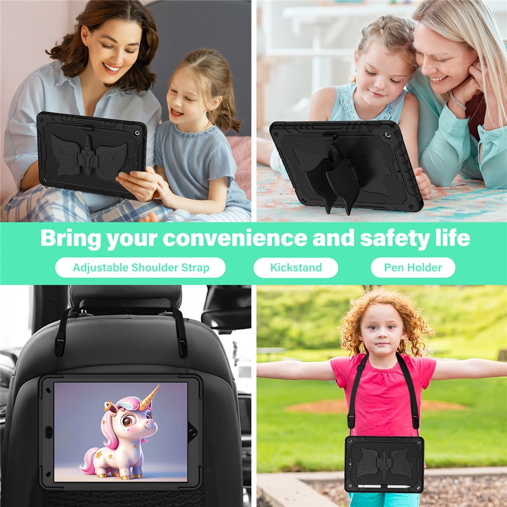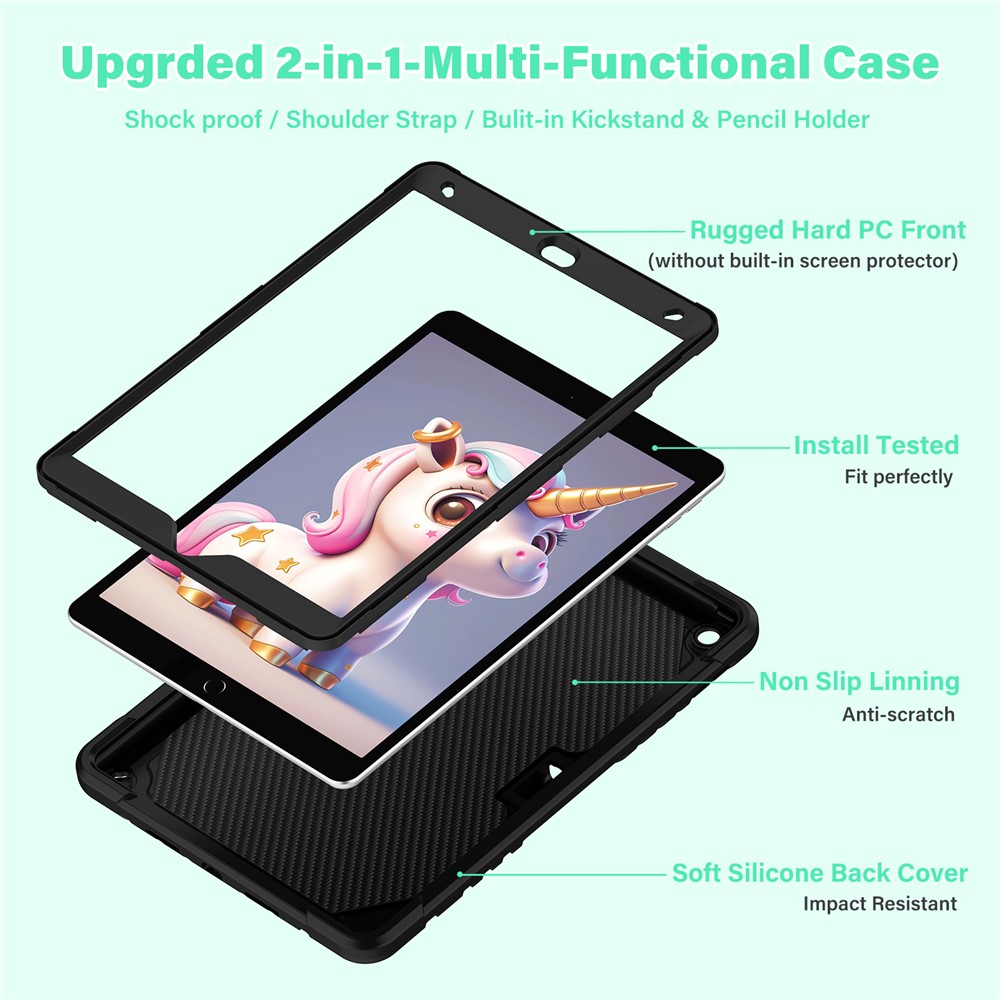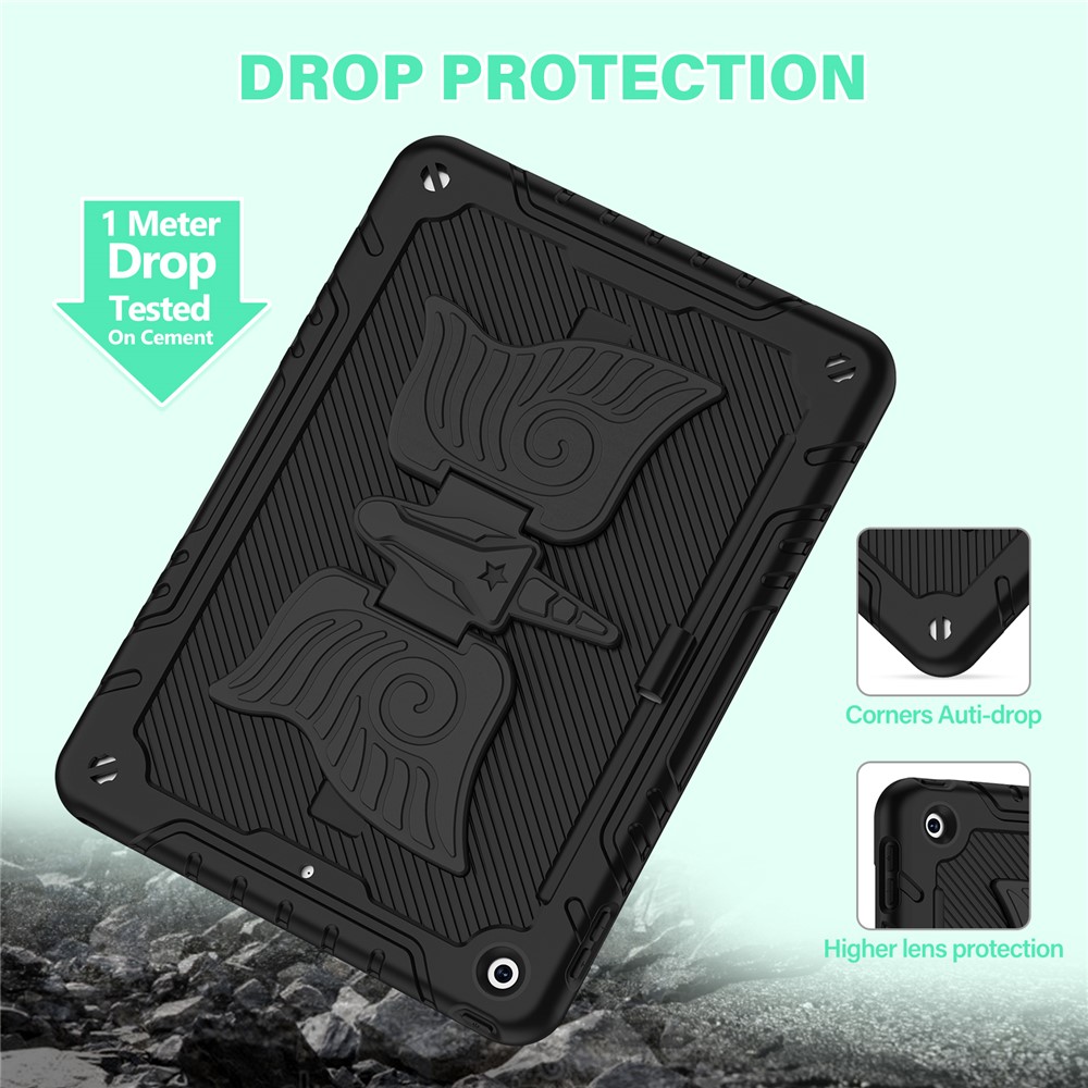 Impact-resistant design and shock-absorbing silicone + plastic materials fully cover the back and edges, protecting against accidental drops and falls. The convenient adjustable but sturdy kickstand fully frees your hands when you’re reading, watching, and surfing the internet in your free time.