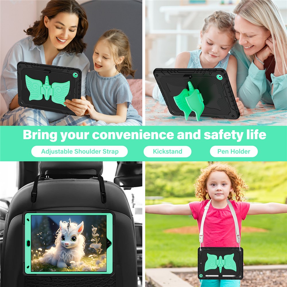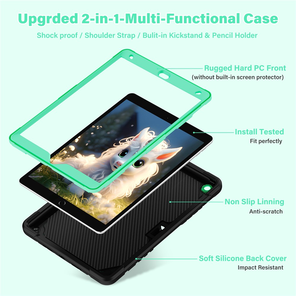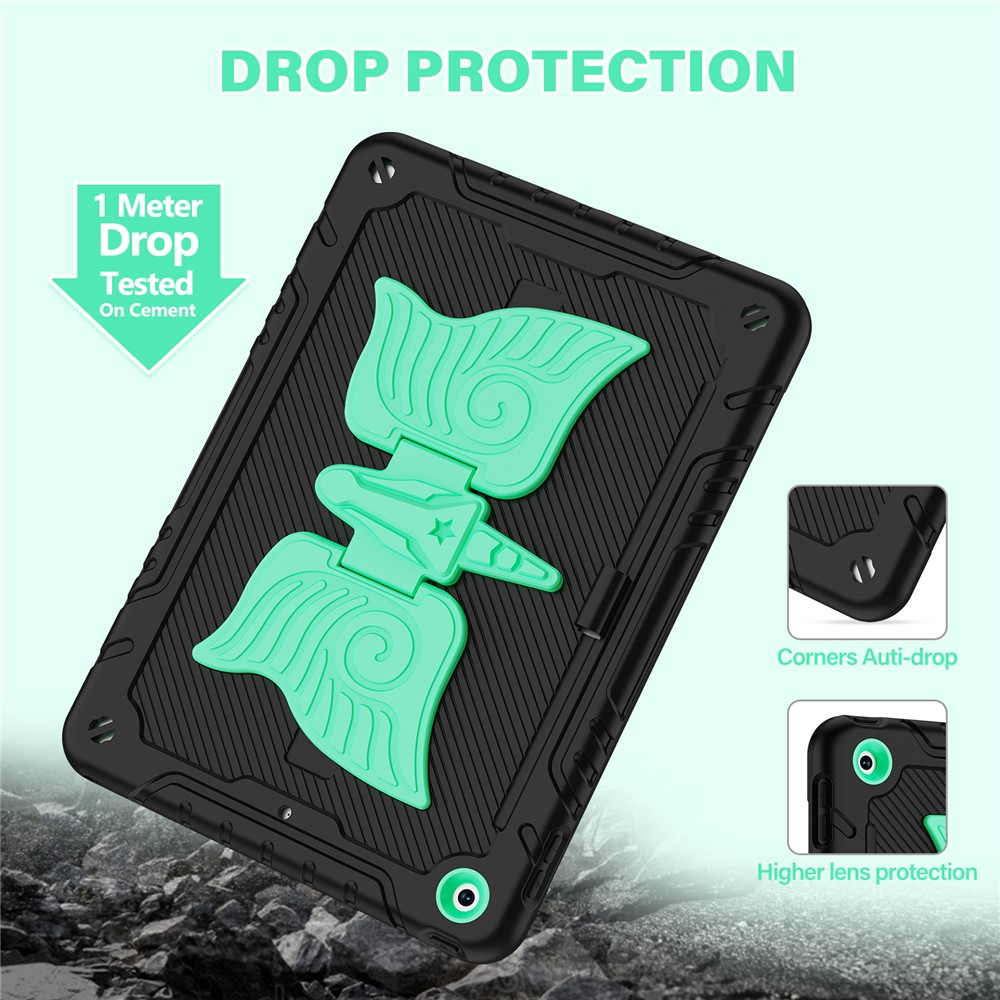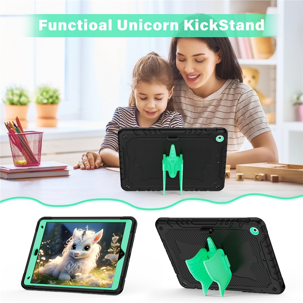 Impact-resistant design and shock-absorbing silicone + plastic materials fully cover the back and edges, protecting against accidental drops and falls. The convenient adjustable but sturdy kickstand fully frees your hands when you’re reading, watching, and surfing the internet in your free time.