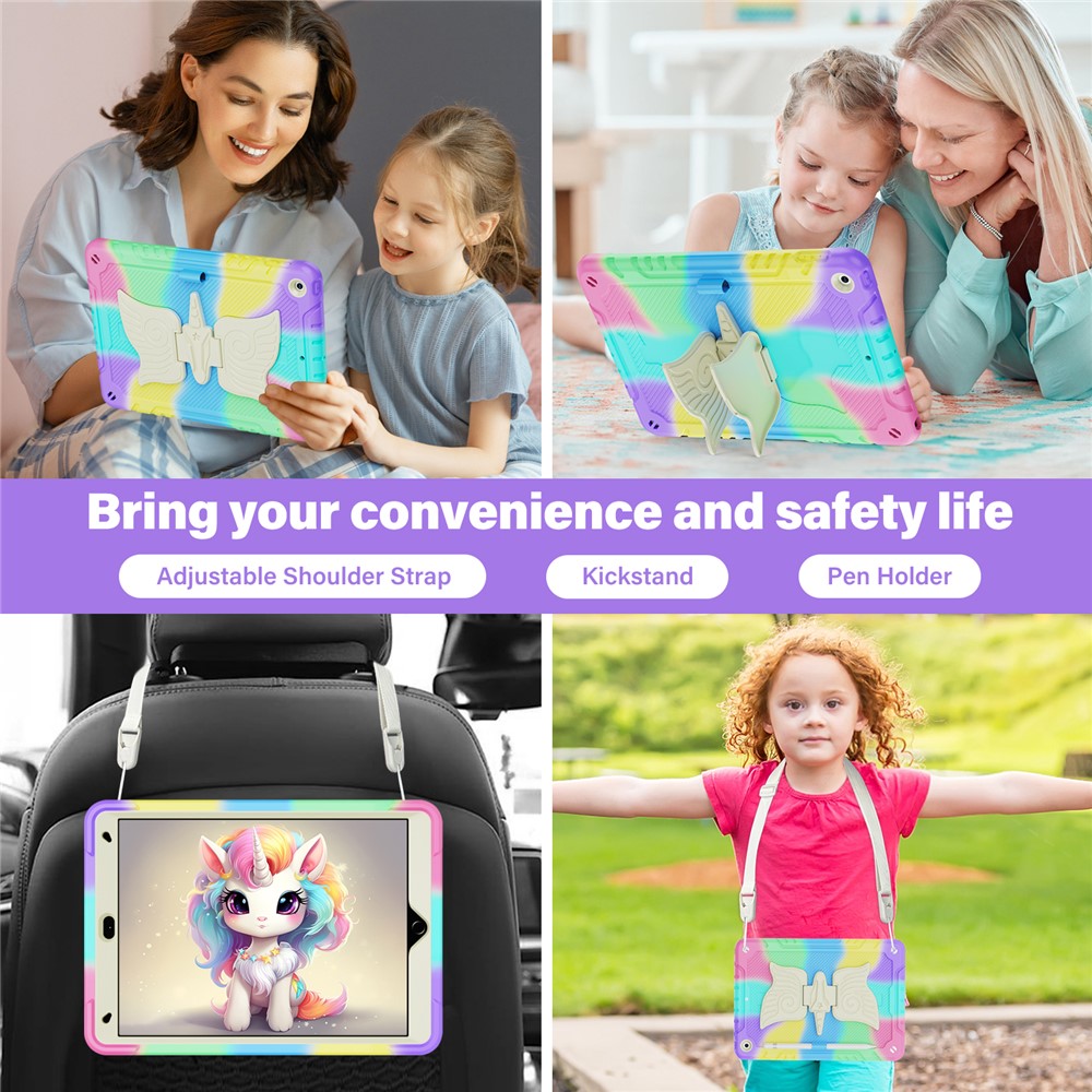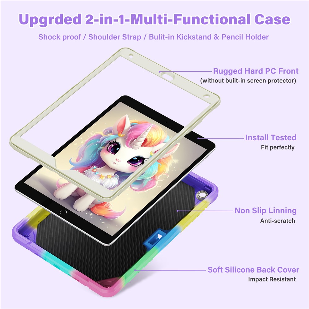 For iPad 10.2 (2021) / 10.2 (2019) / 10.2 (2020) Case Silicone+PC Drop-resistant Tablet Cover with Unicorn Kickstand - Colorful+Purple $29.88