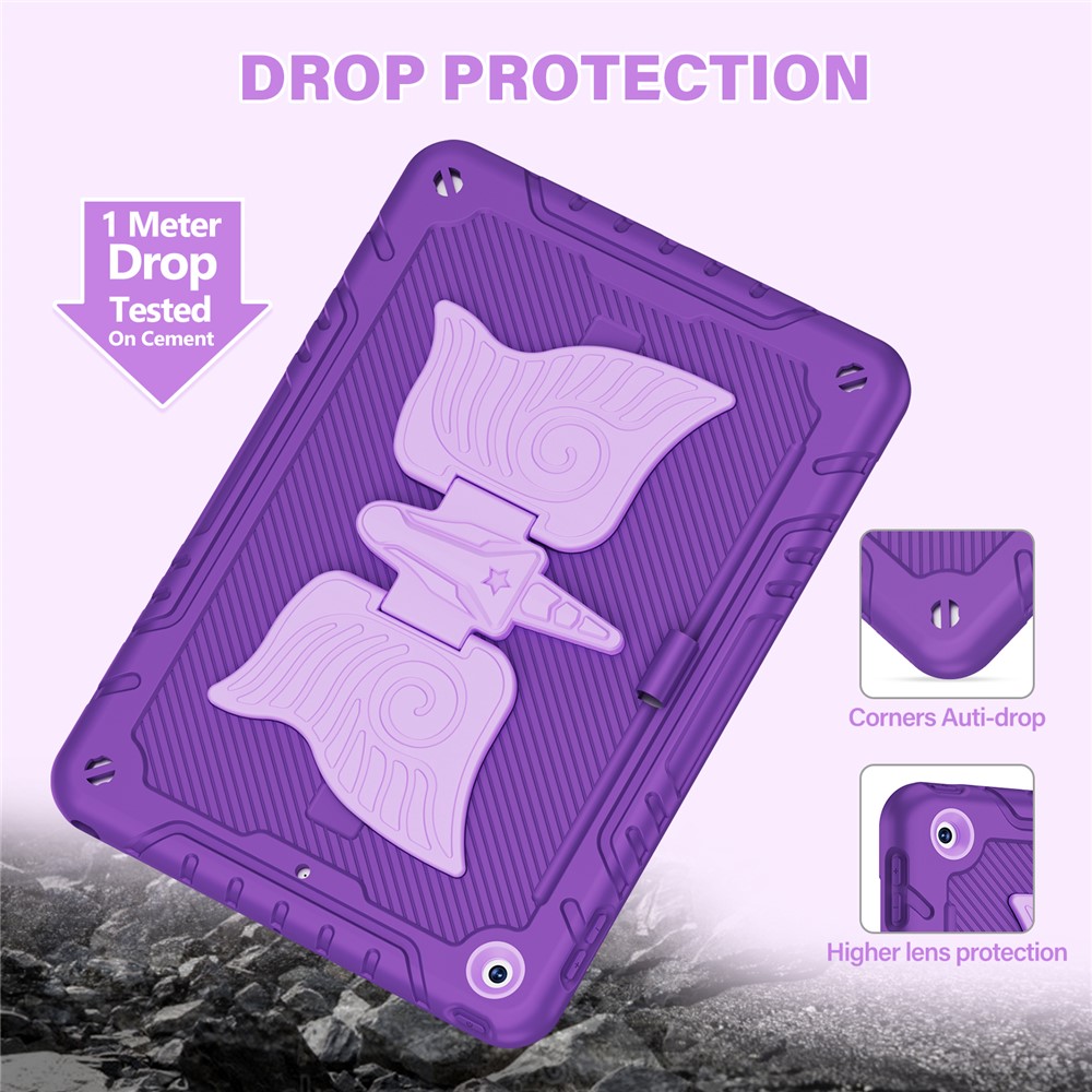 Impact-resistant design and shock-absorbing silicone + plastic materials fully cover the back and edges, protecting against accidental drops and falls. The convenient adjustable but sturdy kickstand fully frees your hands when you’re reading, watching, and surfing the internet in your free time.