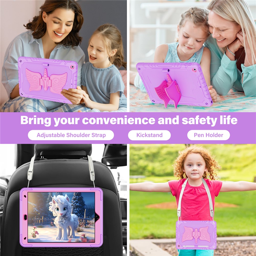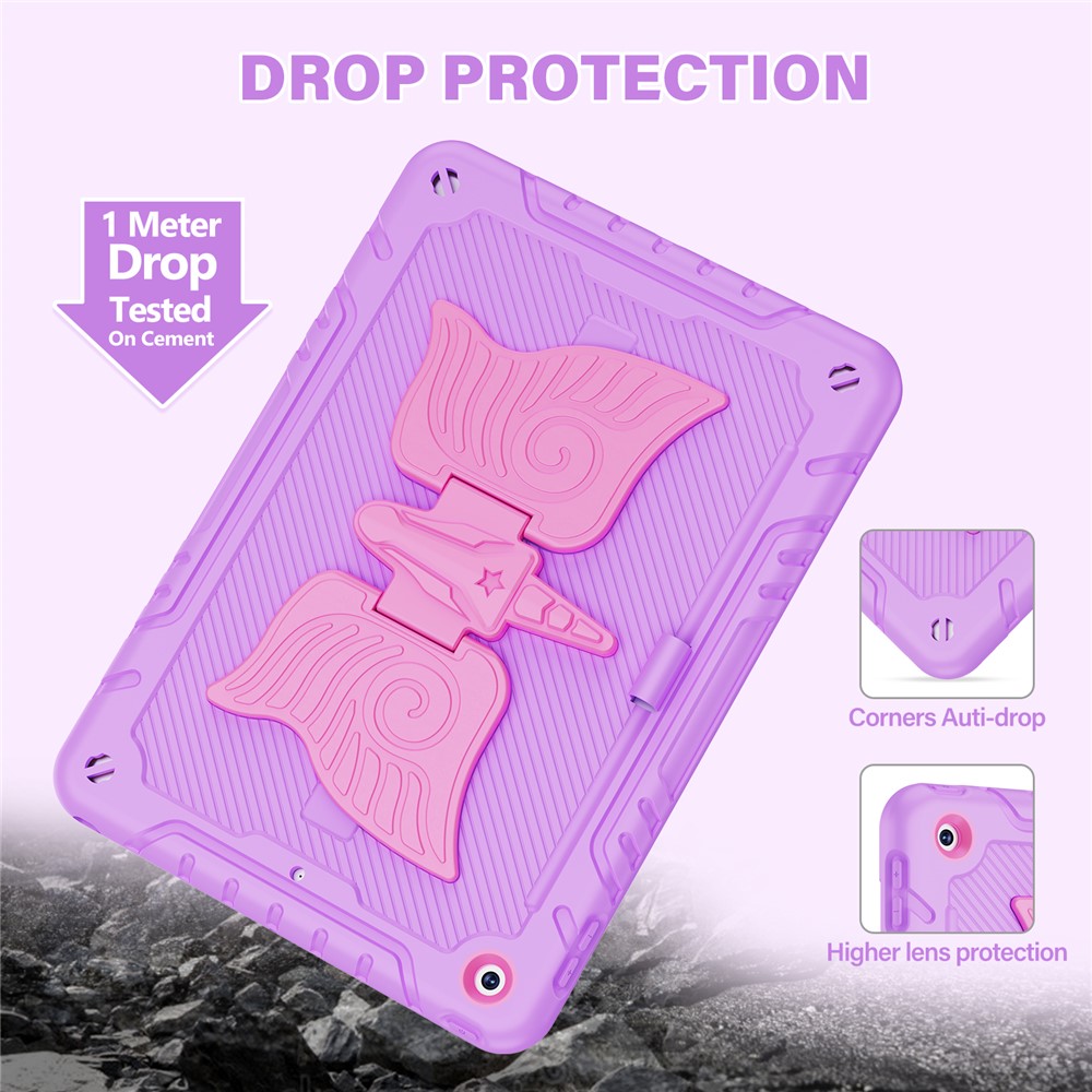 Impact-resistant design and shock-absorbing silicone + plastic materials fully cover the back and edges, protecting against accidental drops and falls. The convenient adjustable but sturdy kickstand fully frees your hands when you’re reading, watching, and surfing the internet in your free time.