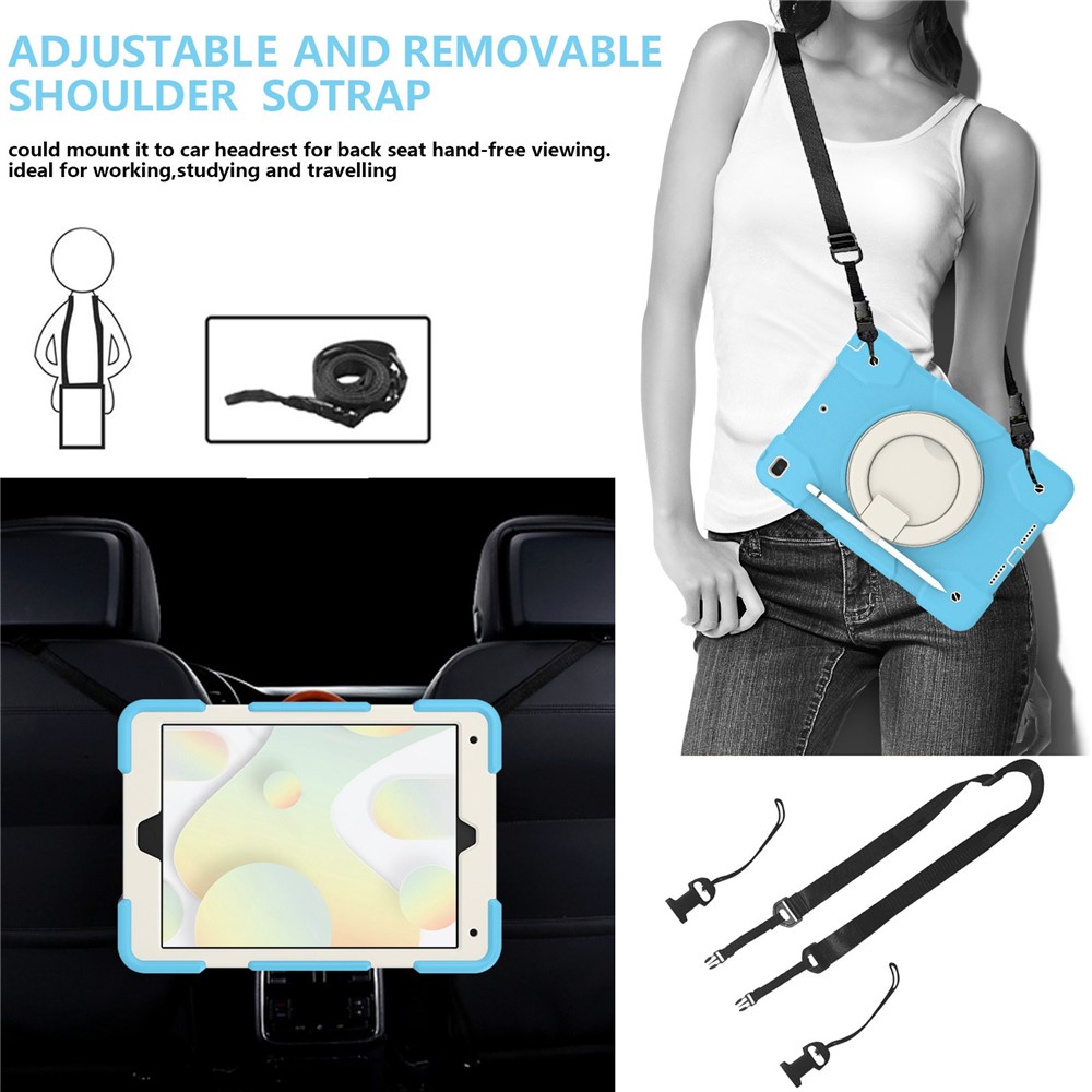 - With Kickstand & Shoulder Strap: The Kickstand Case makes it much more comfortable for typing, watching videos, Internet surfing, reading while keeping both your hands free & avoids any joint pain, not only as a kickstand to use but also as a handle, which is easy to carry. The shoulder strap is adjustable and removable, which is easy to use, and convenient hanging the tablet on your shoulder