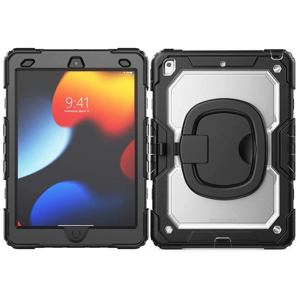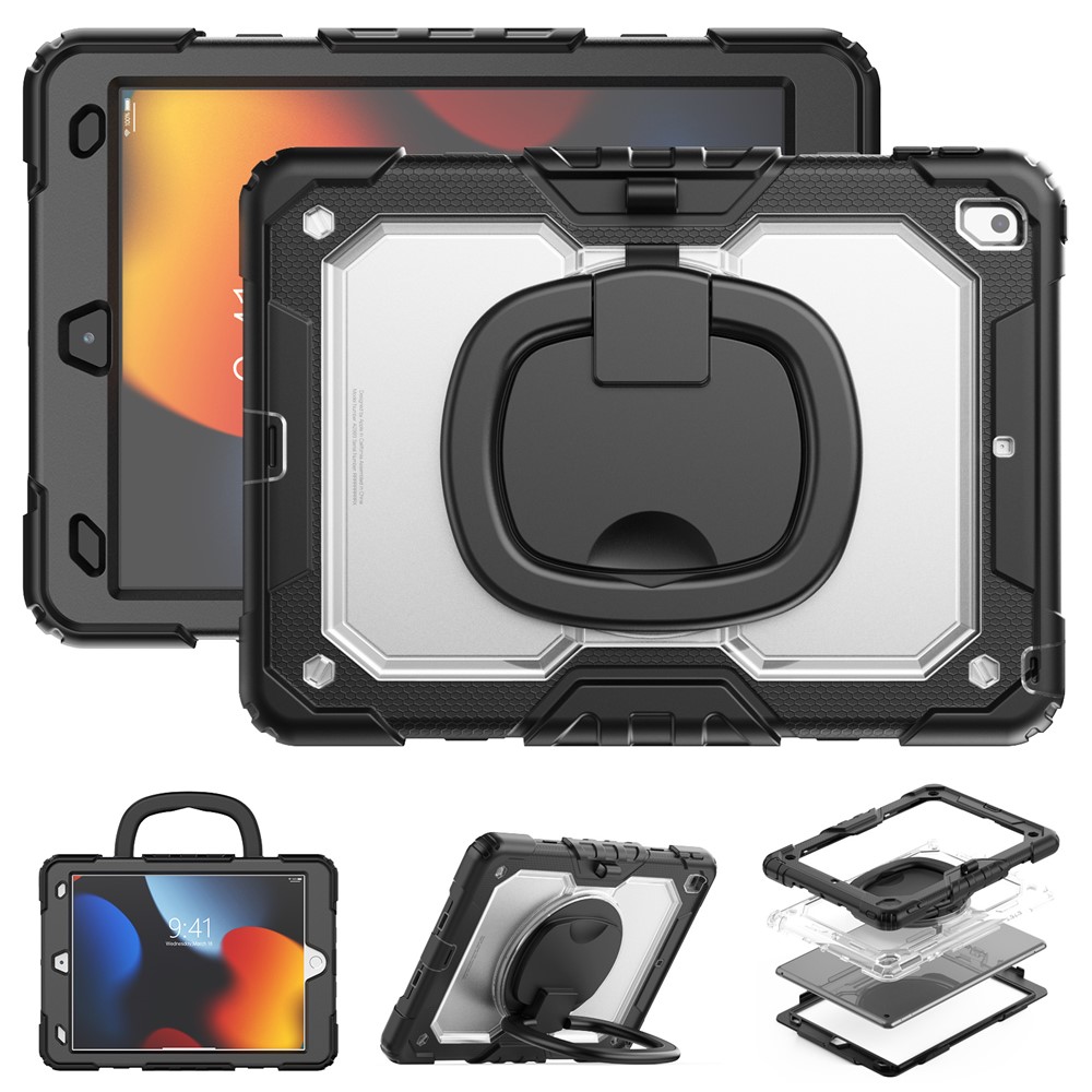 For iPad 10.2 (2021) / (2019) / (2020) Case Ring Kickstand PC + Silicone Shockproof Tablet Cover