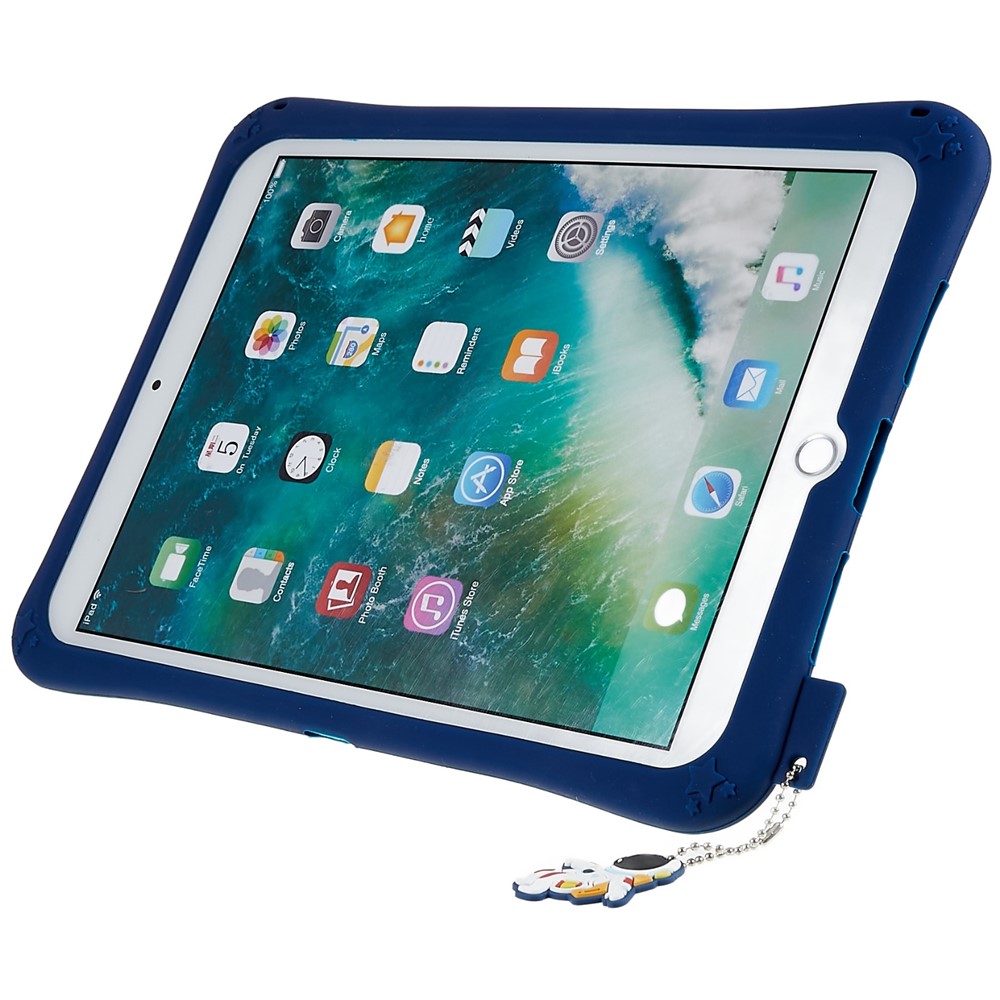 For iPad 10.2 (2021) / (2020) / (2019) / Air 10.5 inch (2019) / Pro 10.5-inch (2017) Space Pattern Kickstand Silicone Cover – Dark Blue