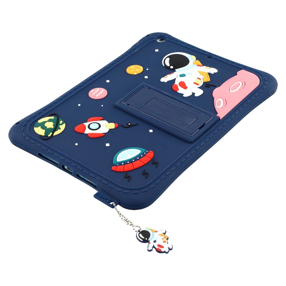 For iPad 10.2 (2021) / (2020) / (2019) Case Astronaut Silicone + PC Kickstand Tablet Cover with Lanyard