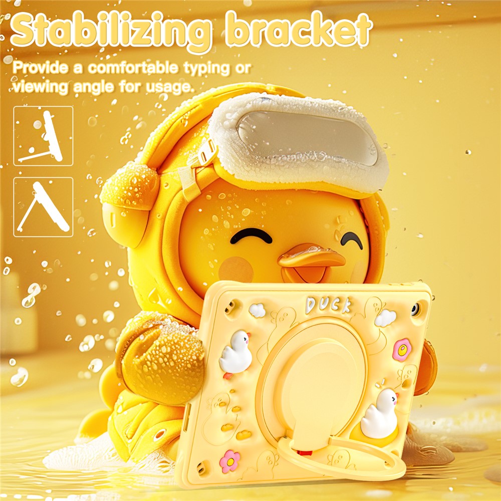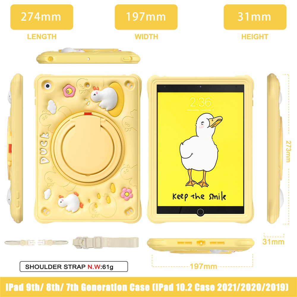 For iPad 10.2 (2021) / (2020) / (2019) Case Cartoon Duck Hand Grip Kickstand PC+Silicone Tablet Cover