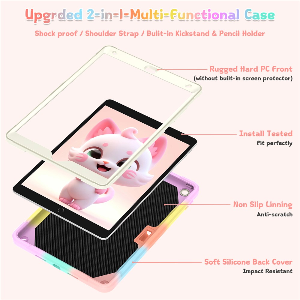 - Vibrant Rainbow Design Eye-catching gradient colors blend fun and style, making your tablet stand out wherever you go.