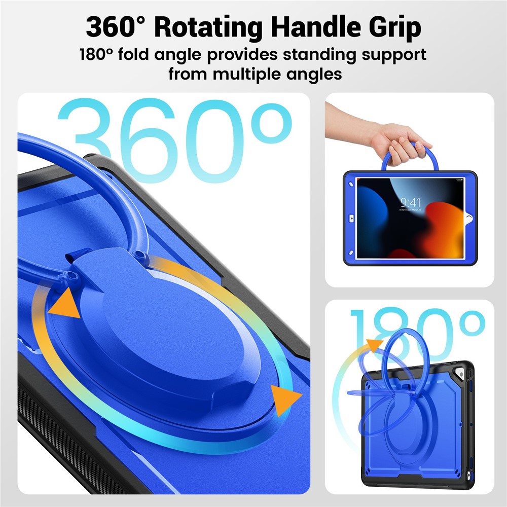 - 360° Rotating Kickstand & Portatble Handle: Features a multifunctional handle that doubles as a 360° rotating kickstand, allowing for easy carrying and convenient hands-free viewing at various angles