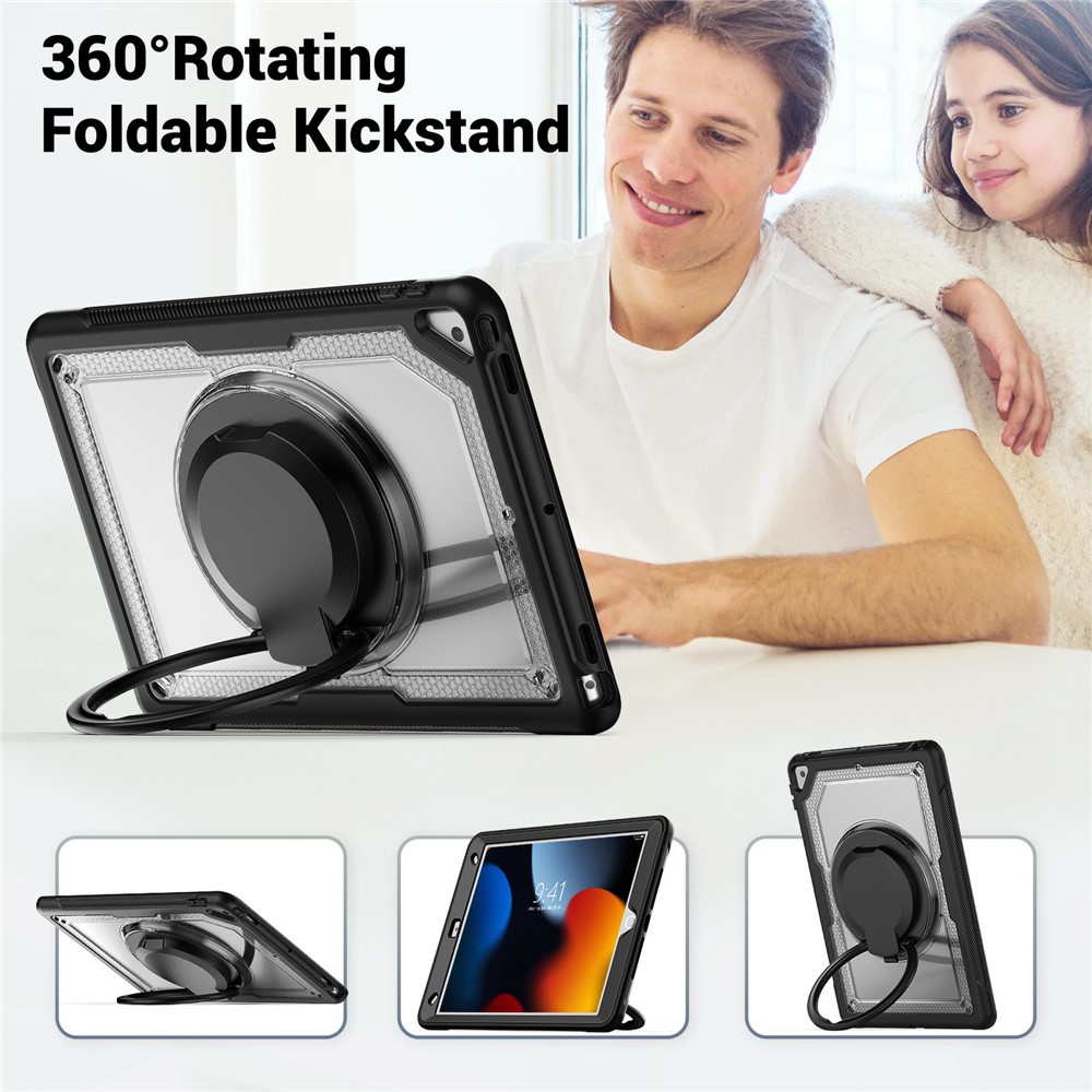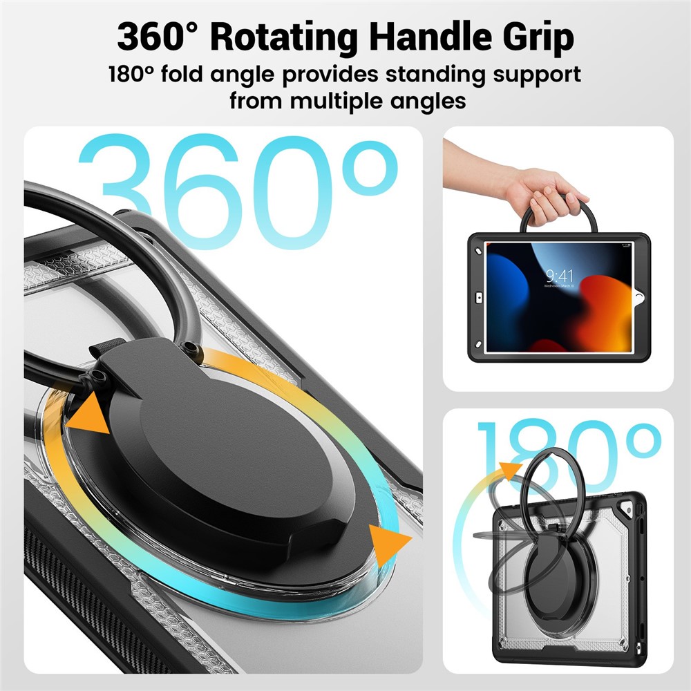 - 360° Rotating Kickstand & Portatble Handle: Features a multifunctional handle that doubles as a 360° rotating kickstand, allowing for easy carrying and convenient hands-free viewing at various angles