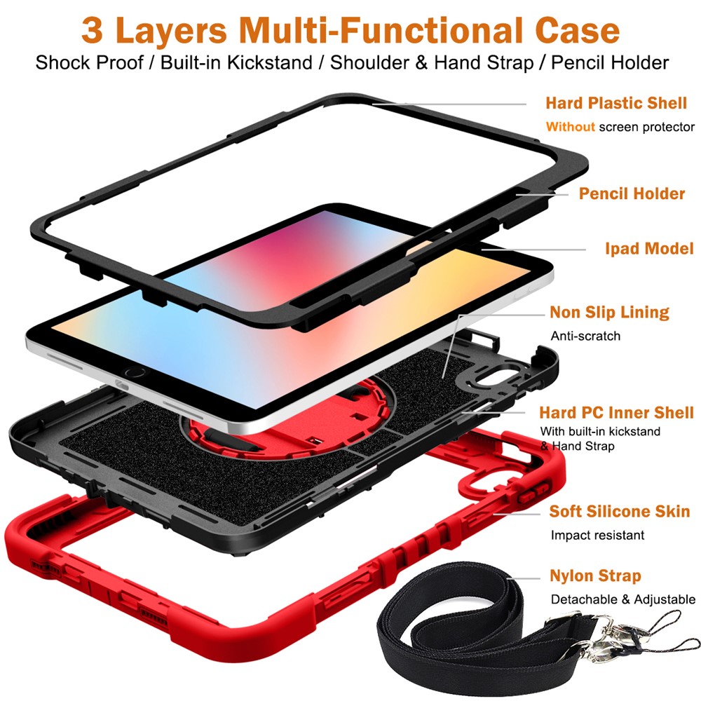 - 360-Degree Kickstand Features an integrated 360-degree rotary kickstand, allowing hands-free viewing in both landscape and portrait modes, not only with a kickstand, but also with a hand strap