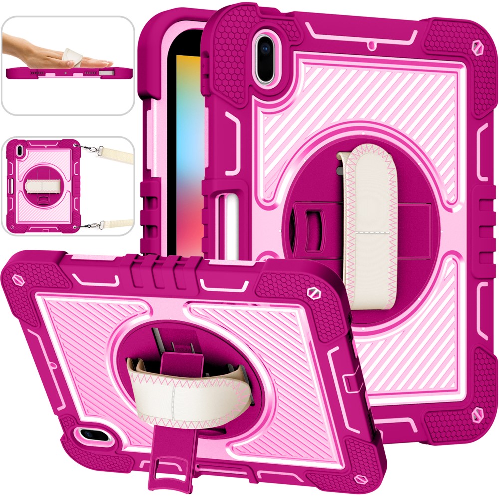 - 360-Degree Kickstand Features an integrated 360-degree rotary kickstand, allowing hands-free viewing in both landscape and portrait modes, not only with a kickstand, but also with a hand strap